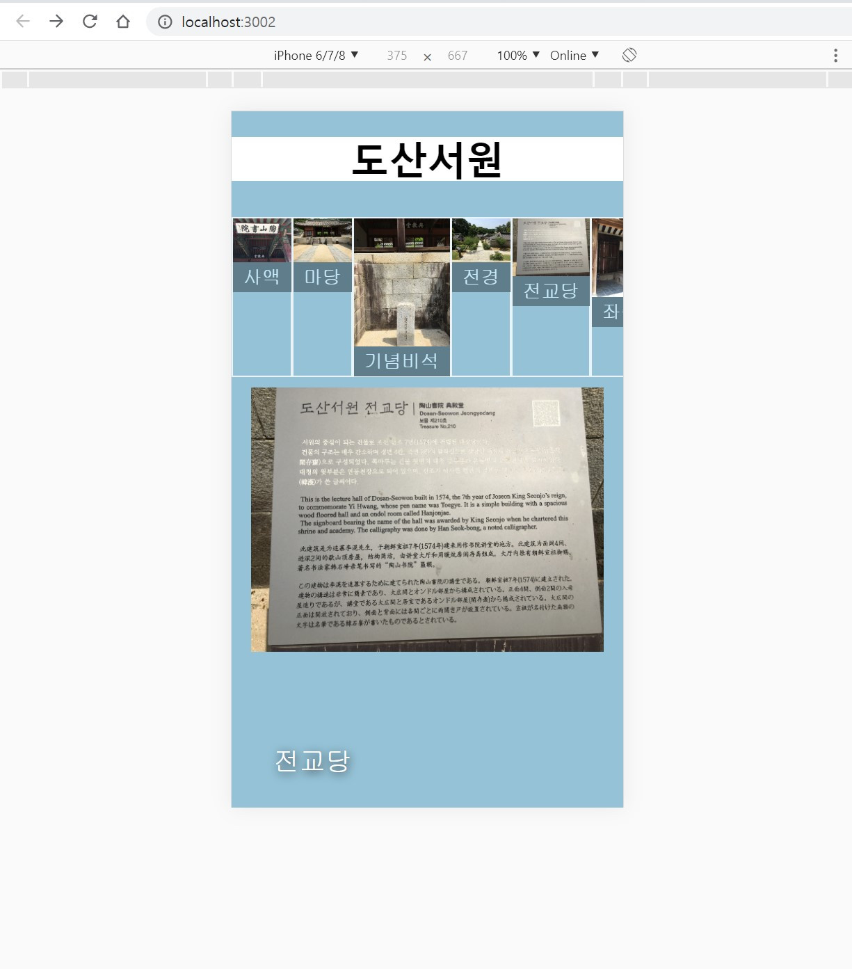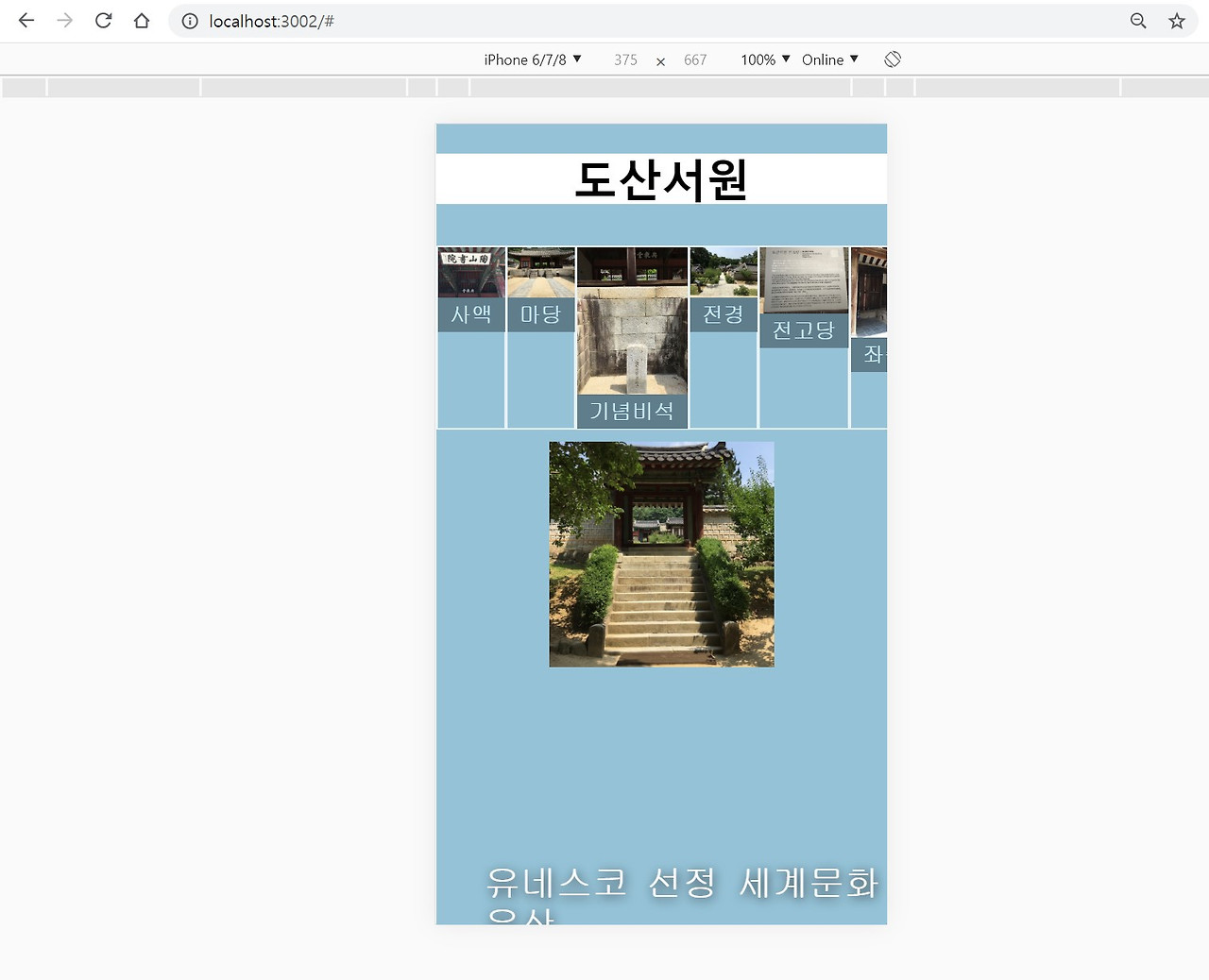 실습 진행 화면(참조 서적의 제1부 4/5/6장 구현까지 출력 화면 - 모바일 뷰포트 렌더링)