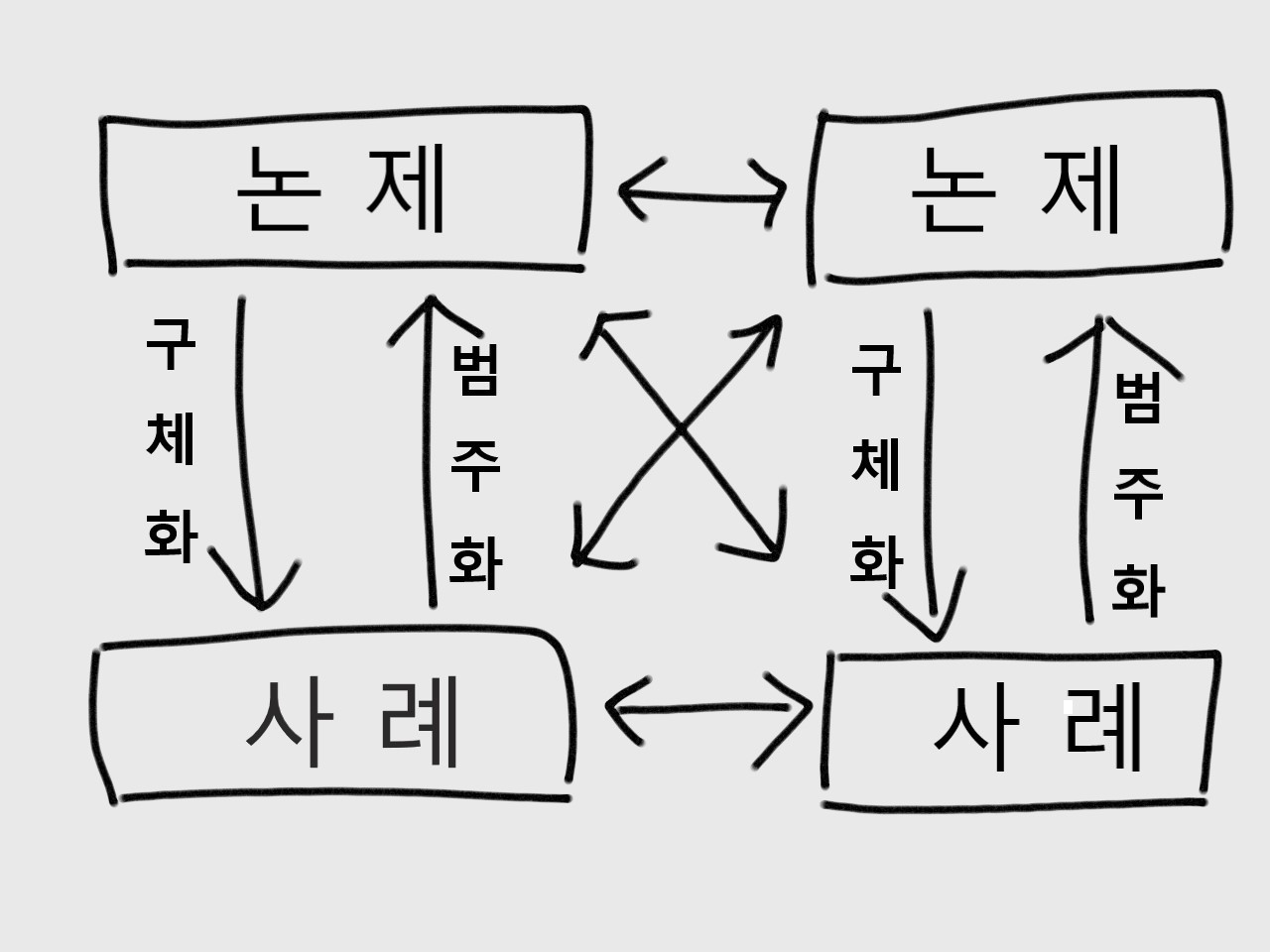 위의 도식, 어디서 많이 본 것 같지 않나? 아마도 지금은 모르겠는데, 본인이 생각키로 '수학의 정석'이라는 책에서 명제라는 단원의 첫머리에 '역'과 '이' 그리고 '대우'라는 개념을 설명할 때 본 듯하다. 문장 개념의 등치와 병치 그리고 상치(?) 같은 개념이 사실상 서양인들이 가장 중요하게 생각하는 논리의 근간이며, 서양인들은 일상생활에서 뼛속 깊이 이 논리적(형식적) 잣대로 세상을 바라본다는 책이 있다.