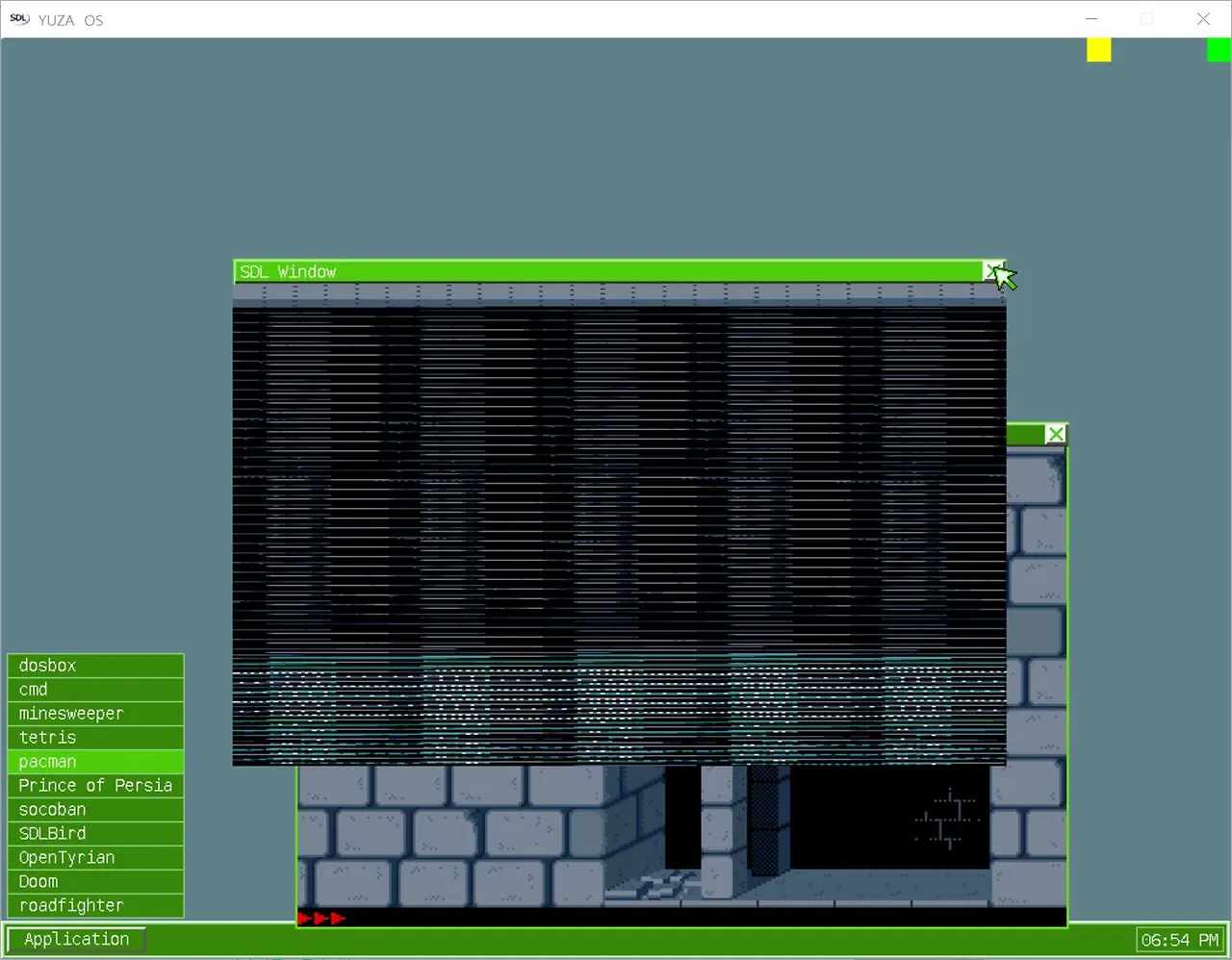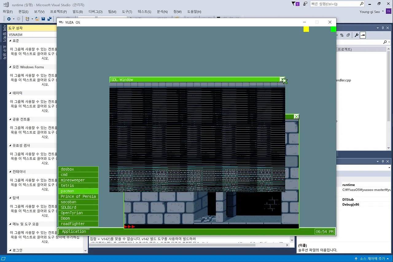 그래서 이미 저자가 만든 YUZA OS나 다운로드해서 윈도에서 압축 푼 후 바로 실행했다. 개인이 만든 OS를 맛보다가 필자가 소싯적부터 즐겨했던 '페르시아 왕자(Persian Prince)'가 응용프로그램에 있길래, 시작하여 첫 판을 넘기고 화면을 키우려고 '따다닥!' 클릭하니 아래와 같이 OS가 뻗었다...