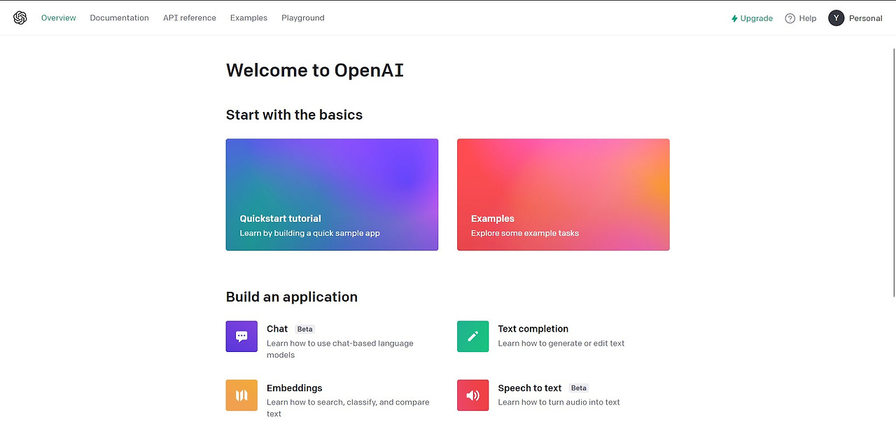 4_ 아래 화면의 OpenAI 사이트에서 서비스 구현을 따라 해 볼 수 있게끔 만든 튜토리얼들이 있는데, 이 중에 Chat이라는 아이콘을 선택한다