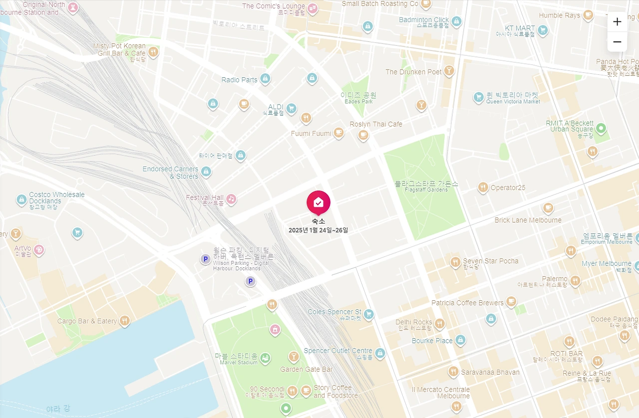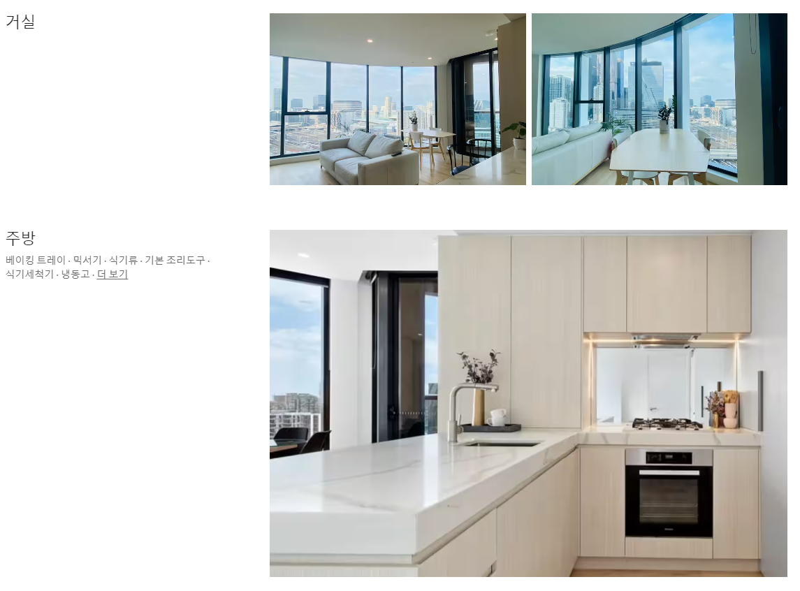 먼저, 숙박은 에어비엔비로 예약했다. 6개월 전이라서 멜버른 시티 주변으로 괜찮은 아파트(먼트)가 있는지부터 찾을 수 있었다. 비행기표를 끊은 트립닷컴에서 추천해 주는 호텔 리스트도 둘러봤는데, 3일 연박으로 머물면서 취사(캥거루 스테이크를 이전에 게스트 하우스에서 해 먹은 적이 있다;)도 가능한 곳은 여기가 적당하게 보였다.