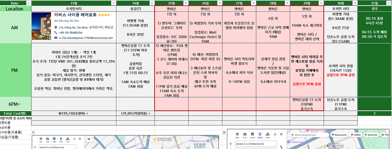 ※ 멜버른 도착 전날 베트남 호찌민 시티 주변에서 마사지도 받고, 마지막날에도 관광을 할 계획이다.