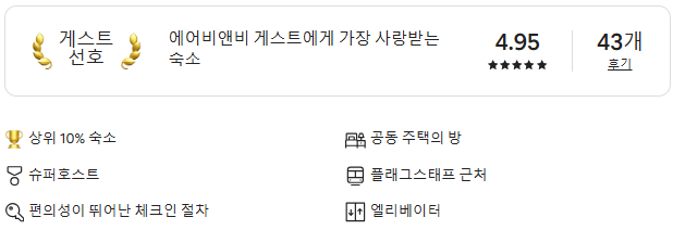 일단 첫날 공항 도착 후, 머물 숙소는 아래 에어비앤비 인증과 같이 슈퍼호스트다. 사실 숙소의 뷰 때문에 예약했는데 다시 봐도, 호주로 기술이민이 성사되면 이런 아파트에서 사는 게 위시리스트 중 하나이다.