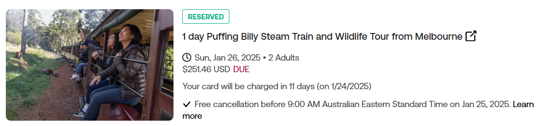 2일 차는 이른 아침부터 부산 떨지 않아도 되는 호주 현지 투어 서비스를 이용한다. 오전 9시 전에 집결해서 어머니가 TV에서 한 번 보시고 타보고 싶다는 퍼핑빌리 증기기관차를 탈 수 있는 투어를 하러 간다.