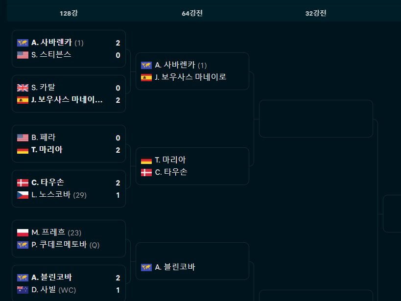 다행히 필자가 좋아하는 벨라루스(옛 소비에트 연합국 중 하나)의 사발렌카가 가뿐히 결승에 진출하면 그녀의 경기를 직관할 수 있을 거 같다. 작년에 영어 스터디 모임에서 학습한 넷플릭스 시리즈의 '브레이크 포인트'를 통해서 현재 여성 테니스 선수들의 면면도 살펴봐둬서 테니스 문외한인 필자가 그래도, 직관할 때 어머니한테 코멘트 정도는 해줄 수 있을 거 같다.