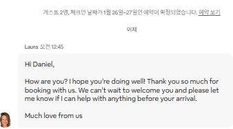 어쨌든 두 번째 머무는 숙소는 주택인데, 이런 느낌 너무 좋아~~! 친절하게 먼저 환영 인사까지 보내온 주인장이라서 꿀잠 잘 수 있을 거 같고, 다음날 알바 온천스파로 가는 데는 20분도 안 걸린다.