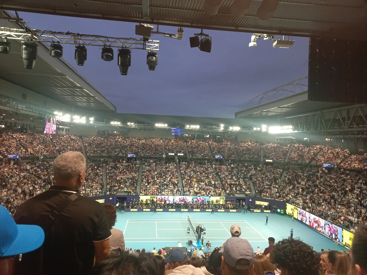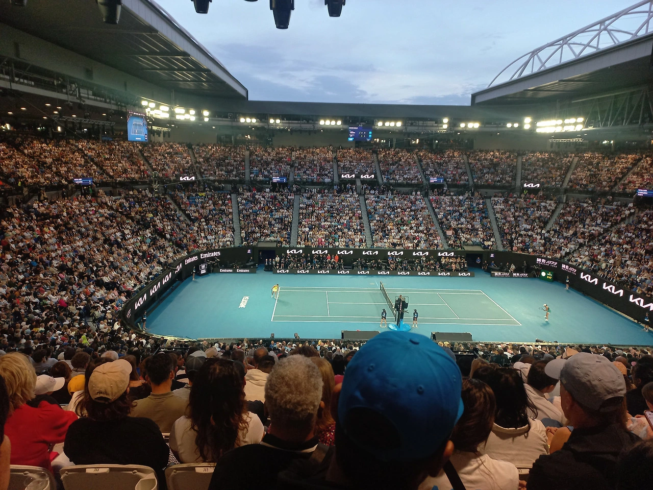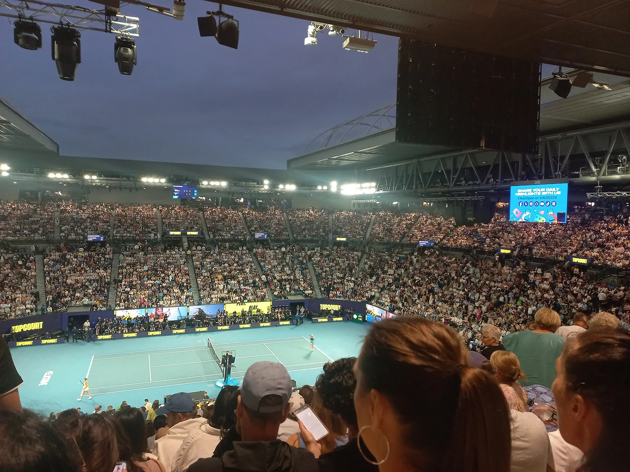 호주 오픈 로드 레이버 아레나 관람석에 앉아서 경기 시작 전 찰칵~ 어머니는 이날 한숨도 못자고 오전투어하고 테니스 경기까지 끌려와서, 경기 전 꾸벅꾸벅 조셨지만, 나보다 사진구도를 더 잘 남겼다.