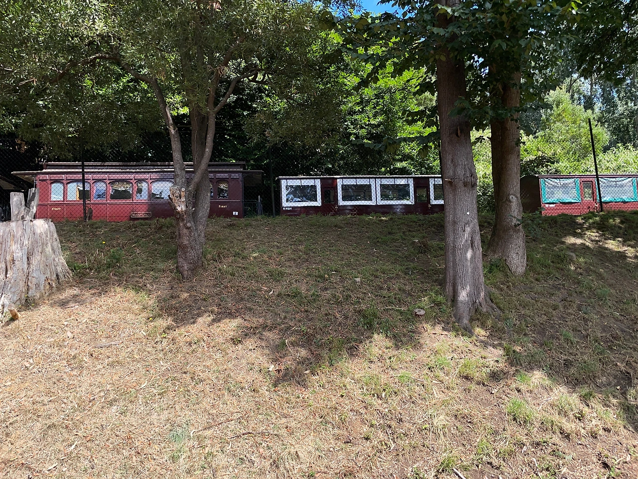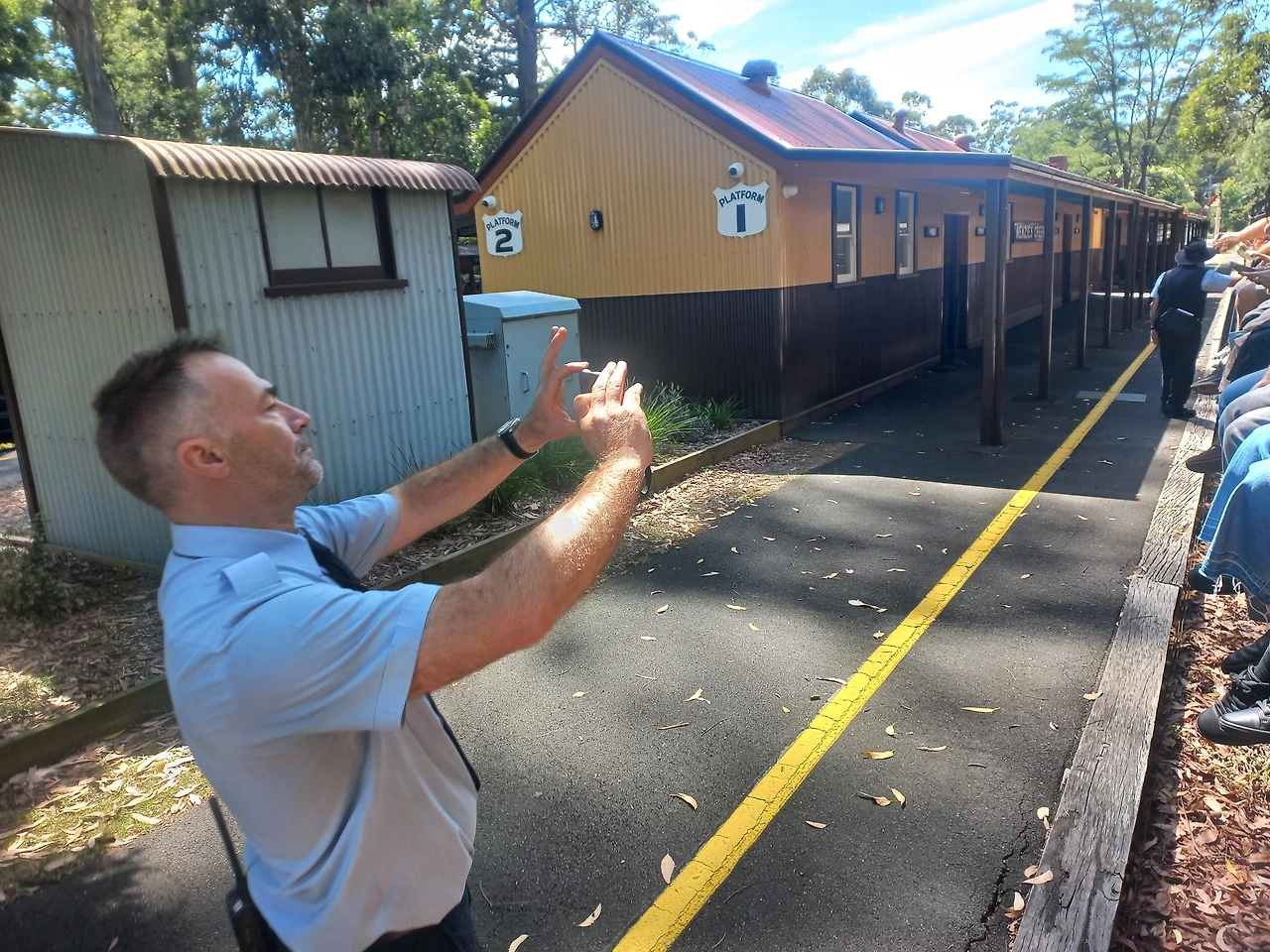 퍼핑빌리 증기기관차를 타고 중간 기착역에서 기다리는 중