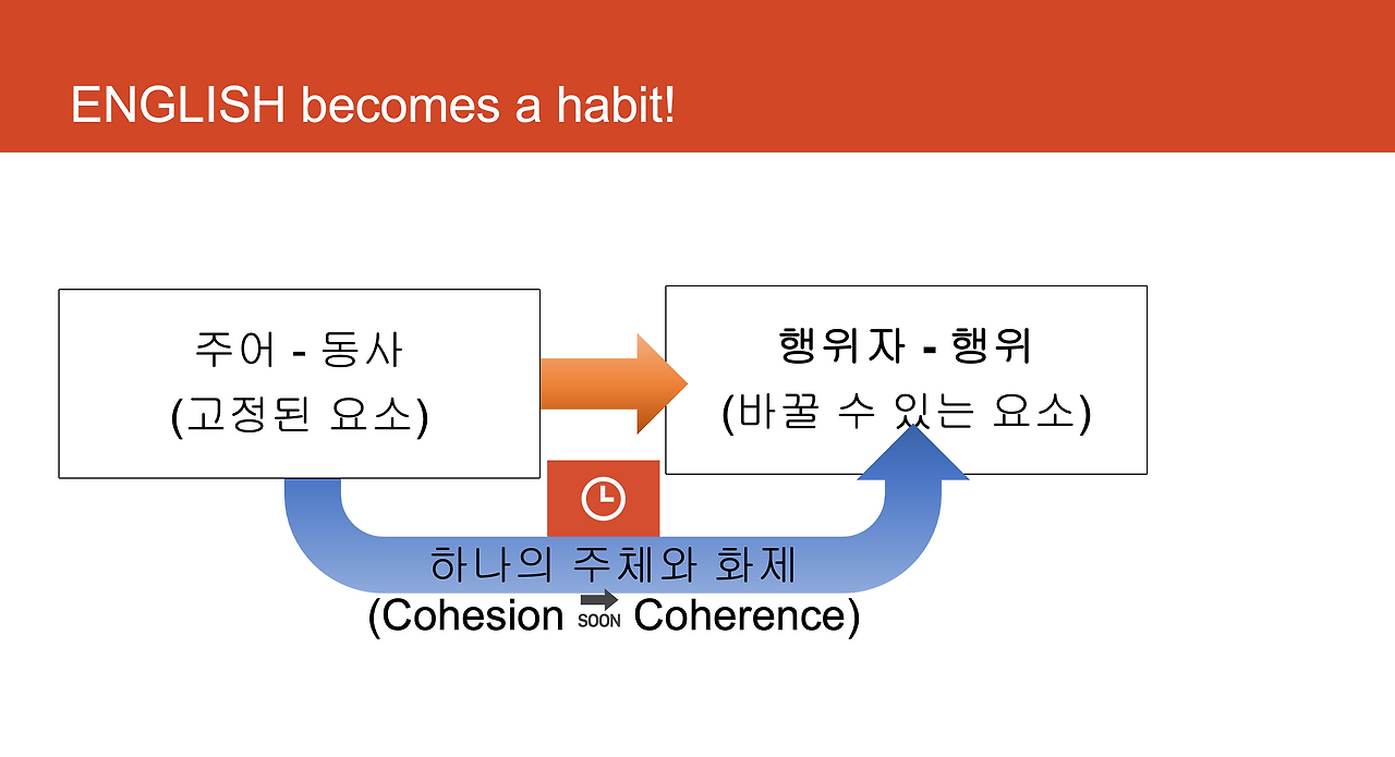 잘 읽히는 글이 가지고 있는 위의 두 가지 속성에서 비롯된 것이 영문법의 규칙 중 하나인 '수동태'이다. 즉, 문맥(Context) 상 대상(주체와 객체, 화제와 서술부)이 바뀌지 않도록 하기 위함이다. 하지만 영어를 가르치는 교단에서 이러한 큰 그림을 먼저 보여주고, 왜 수동태가 필요한지를 알려주는 경우는 없다고 봐도 무방하다. 이게 한국의 주입식 교육이 영어를 왜 지엽적인 면만을 바라보게 만들고, 인생이라는 긴 마라톤에서 필요한 학문이 아닌 경쟁에서 이기기 위한 입시용 과목으로 전락시키게 만들었는지를 보여주는 하나의 예일뿐이다.