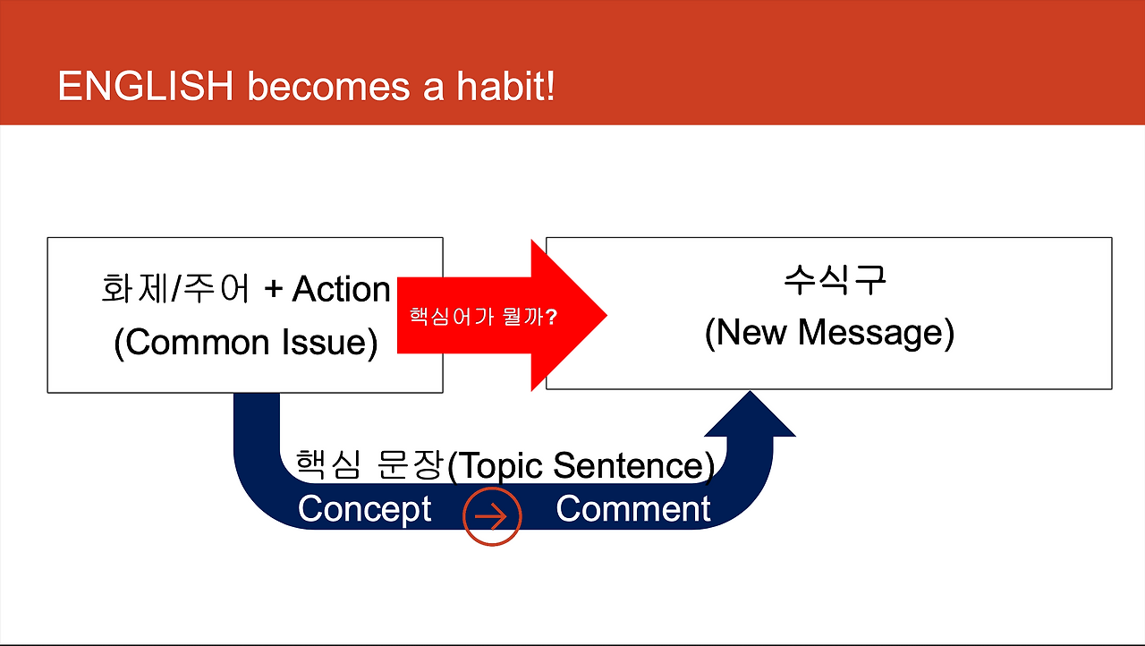 당시에 해당 에피소드의 스크립트 내용을 일주일 정도 숙지할 수 있는 여유를 가지고 있었지만, 위에서 말한 영어식 사고대로 말하는 훈련에 초점을 두지 않았다. 본인이 고등학교 역사시간에 배웠었던 약간의 지식(구정보)을 맥락(한국어식 사고)으로 영어로 내뱉고 교정받기를 수업마다 반복했었다. 실제로 나의 영어식 사고의 습관화에는 도움이 되지 못한 수업이었다는 것을 왜 이 10부작의 <영어식 사고로 글쓰기> 브런치북을 쓰고 나서야 알게 되었을까?