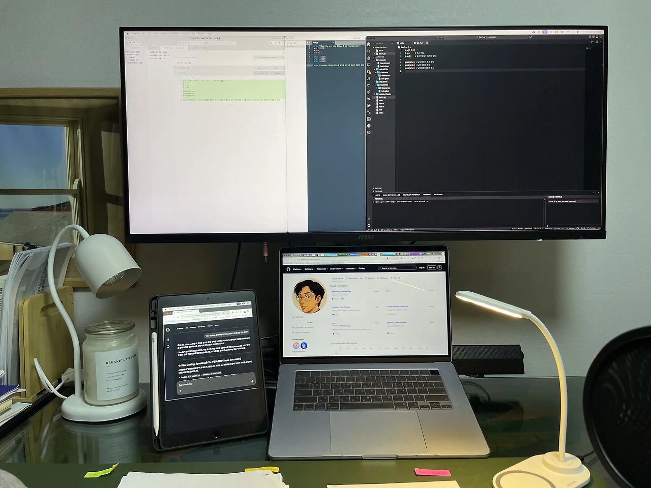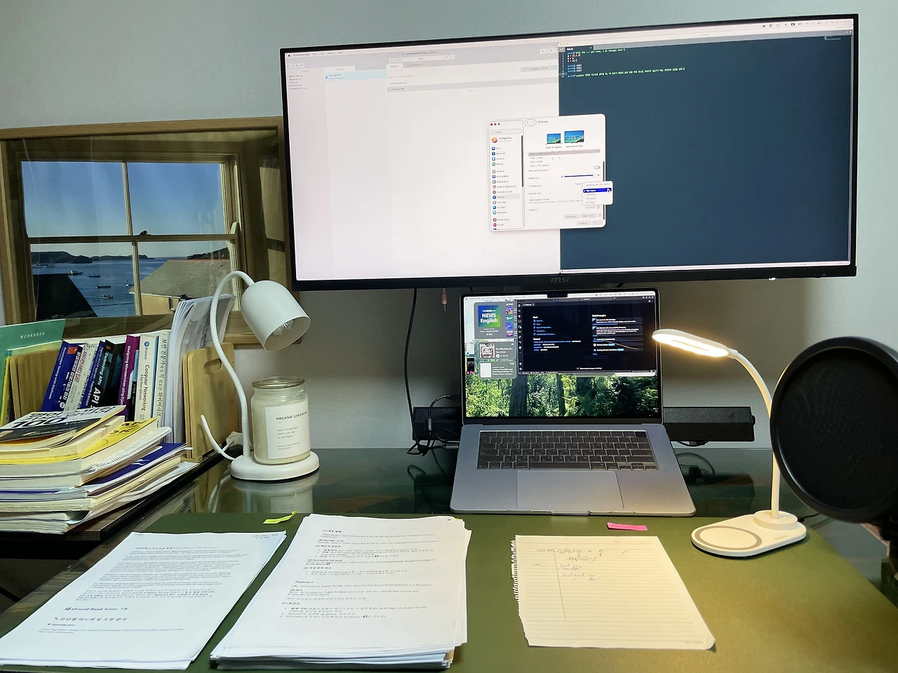 MAG401QR 모니터는 21:9 울트라와이드 뷰를 지원한다. 왼쪽엔 브라우저나 개발 워크플로창, 오른쪽엔 작업창을 띄워두고 그 사이를 오가며 작업할 때 고주사율은 시선 이동 시 발생하는 화면 흐림을 최소화해 줌. MS 워드 문서 창을 세 개 병렬로 띄어 놓고 문서 비교가 가능하긴 하나, 필자가 업무를 본 결과 두 개 이상 띄워놓을 까닭이 없다는 결론을 내림.