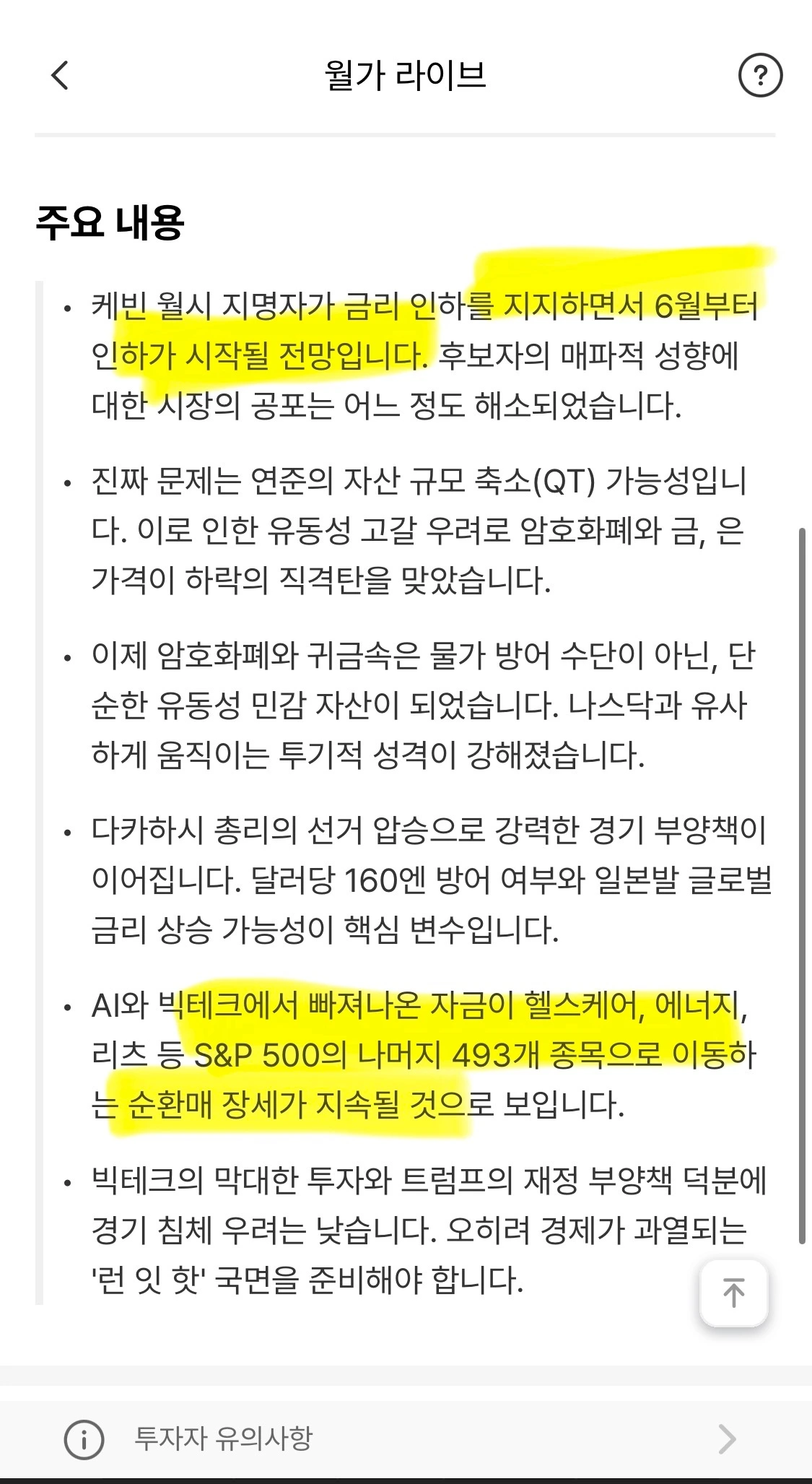 이유: VTI는 S&P 500(SPY)보다 중소형주 비중이 높습니다. 역사적으로 시장 거품이 빠지는 하락장에서는 대형주 위주의 SPY보다 VTI의 하락 폭이 소폭 더 클 수 있지만, 장기적으로는 금리 인하 수혜를 입는 중소형주의 반등 탄력이 더 큽니다.