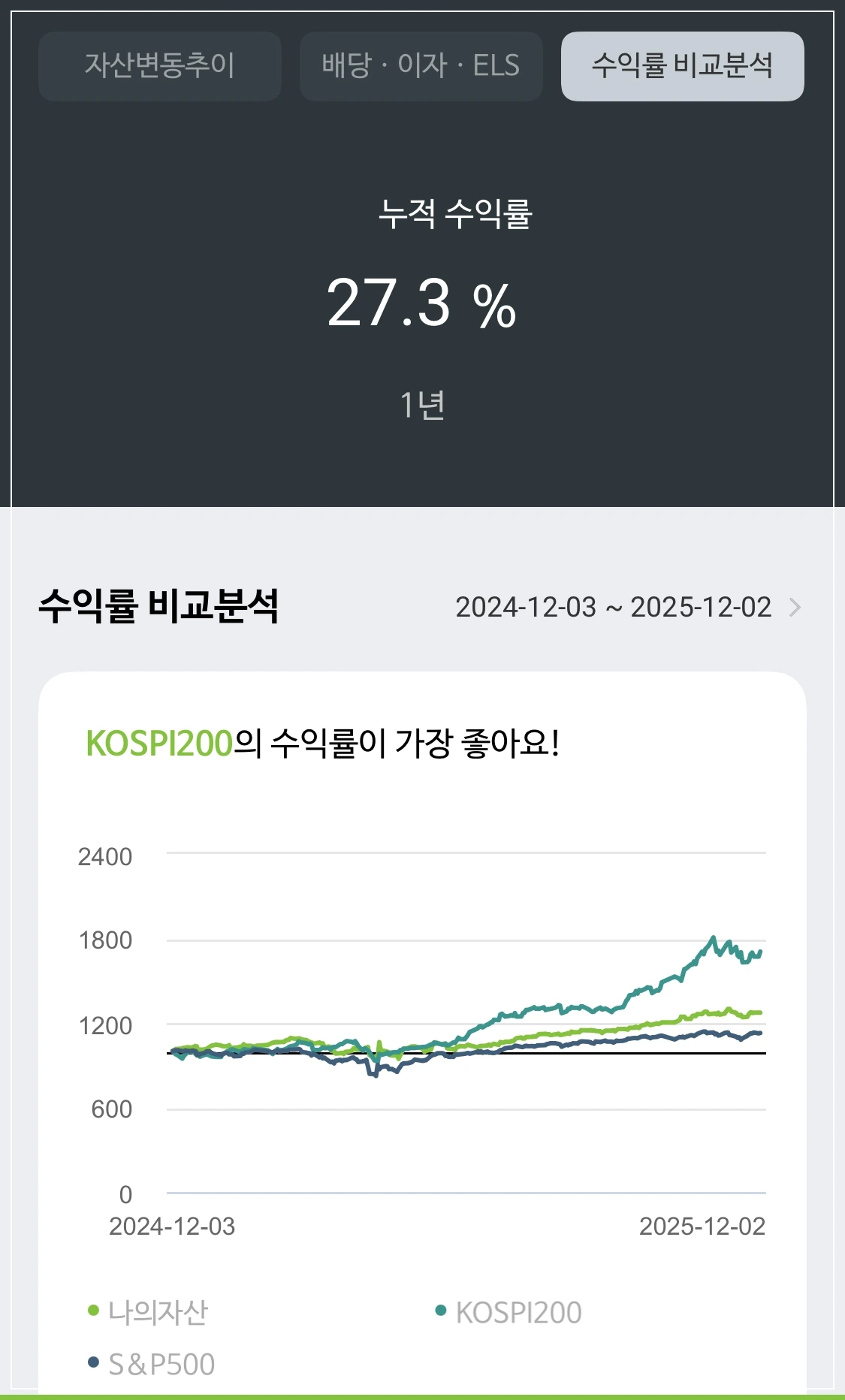 작년 12월까지 1년 간 누적 수익률만을 미국 시장과 비교해도 코스피의 상승률은 무서웠다.