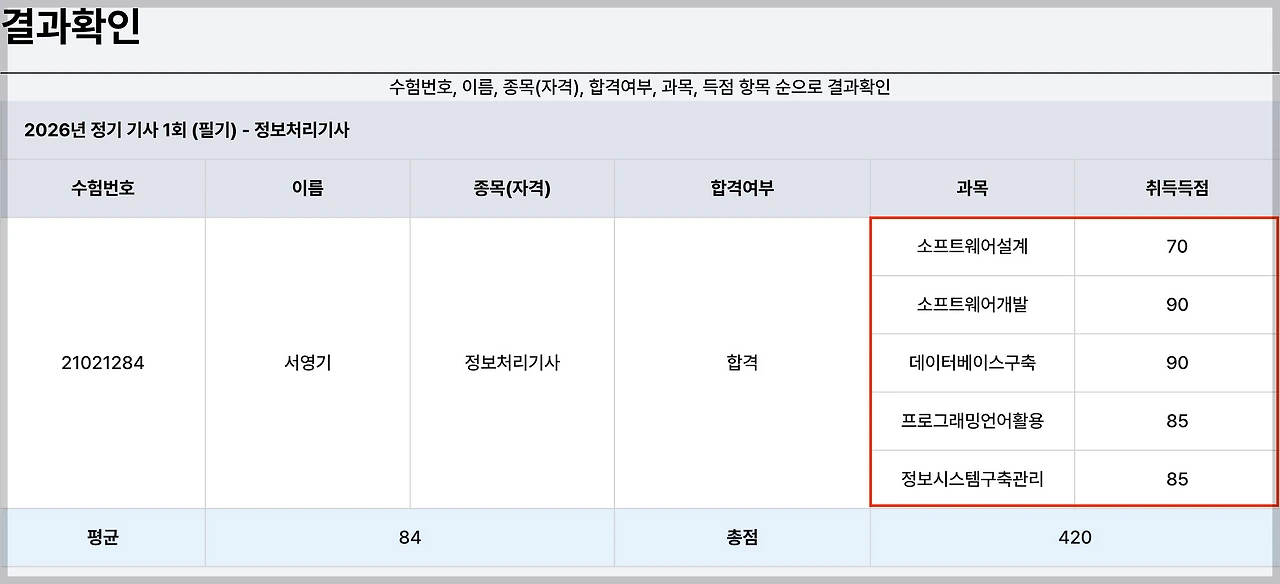 필기 합격자 문자 메시지가 아니라, 자격요건 응시서류 제출 안내 문자 메시지가 왔다. 내일이 이 시험의 합격자 발표일인 줄 알았는데, 오늘 사이트에서 보니 이전에 가채점했던 결과 그대로 나왔다.