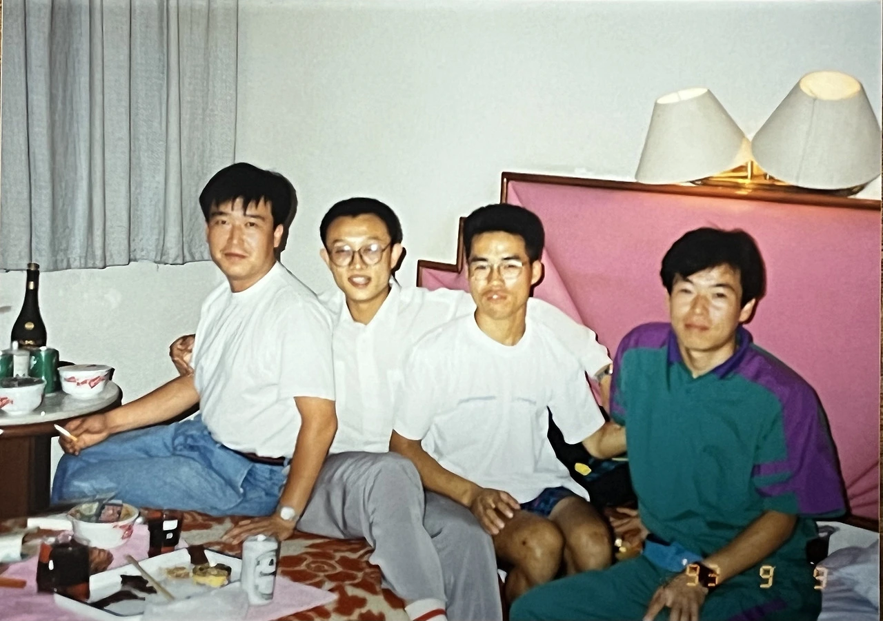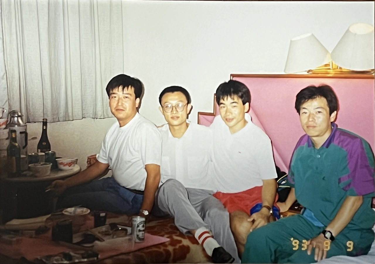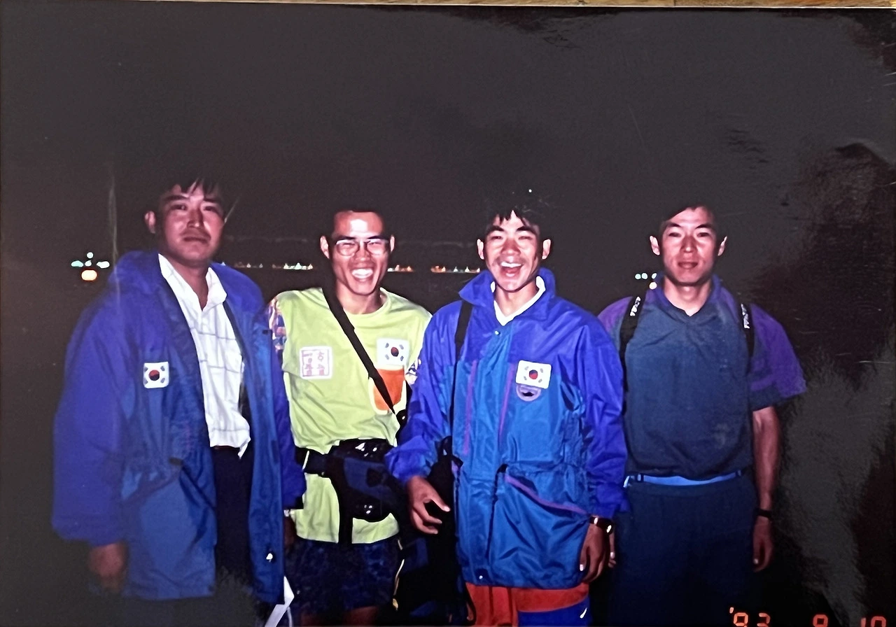 1993년 중국 오양컵 대회 참가임원 및 선수 박수민(MTB연맹부회장) 노기탁선수, 권영학선수, 조동안선수.