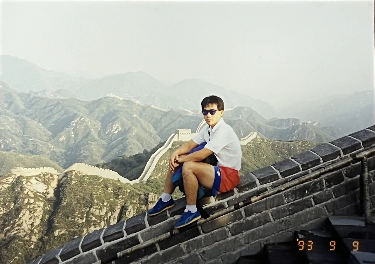 만리장성을 배경으로 만리장성 위에서.