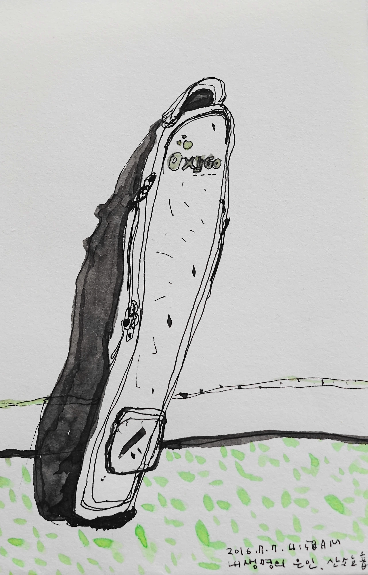 산소통은 원래 썼던 크기의 절반 길이였는데, 아마 휴대용이었나 보다.