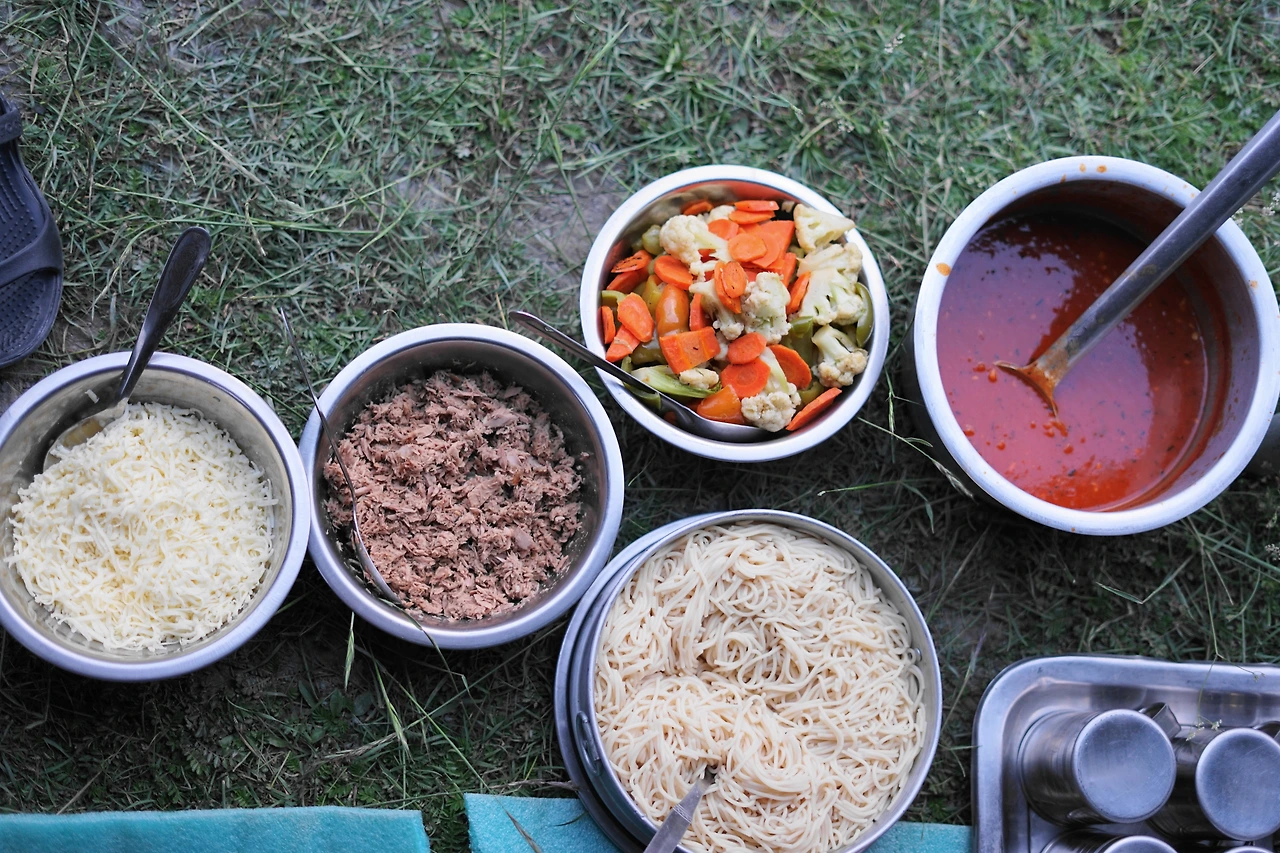 5인분씩 면을 삶아 다시 소스에 비벼내어 서빙하는 일은 생각보다 꽤 큰 일이었다. 그곳 또한 너무 척박한 곳이어서 도착한 당일 필요한 채소들을 전혀 구할 수 없었고, 카트만두 슈퍼에서 준비해 간 엔쵸비와 올리브 통조림이 전부였다. 난감했다. 순간 자신감이 뚝 떨어졌다.