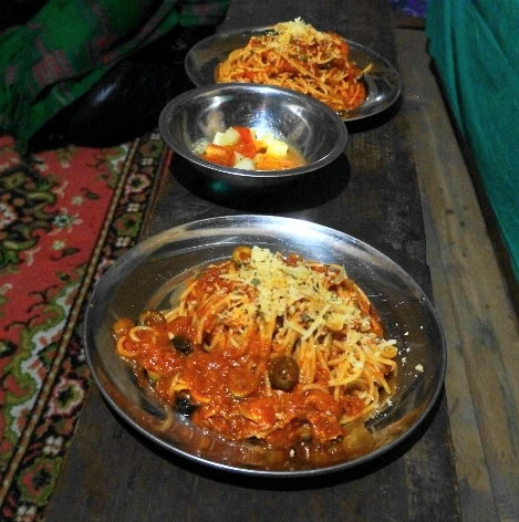 네팔 히말라야 트레킹은 여러 면에서 라다크와 좀 달랐다. 그리고 그땐 순서대로 돌아가며 저녁식사 당번을 정했는데, 내 메뉴는 스파게티였다.
