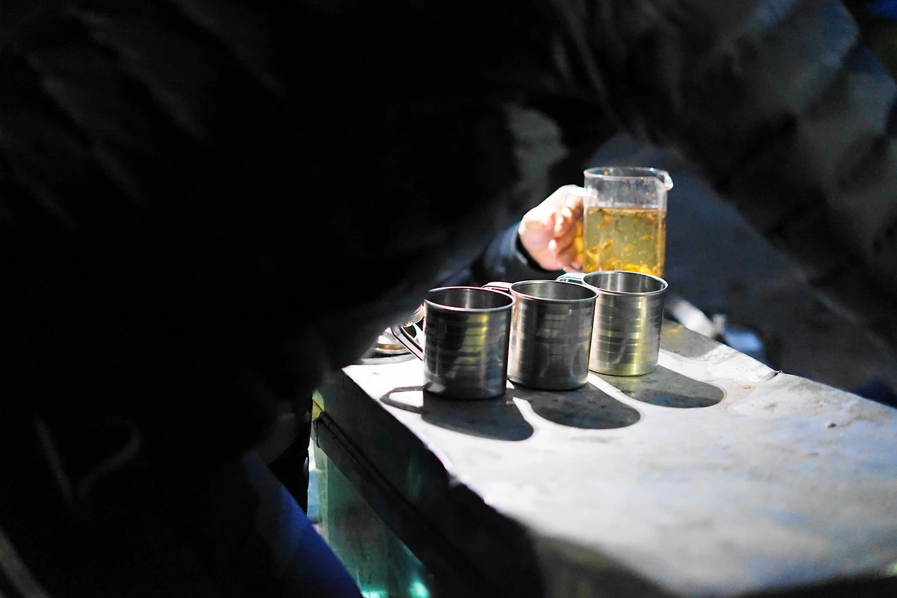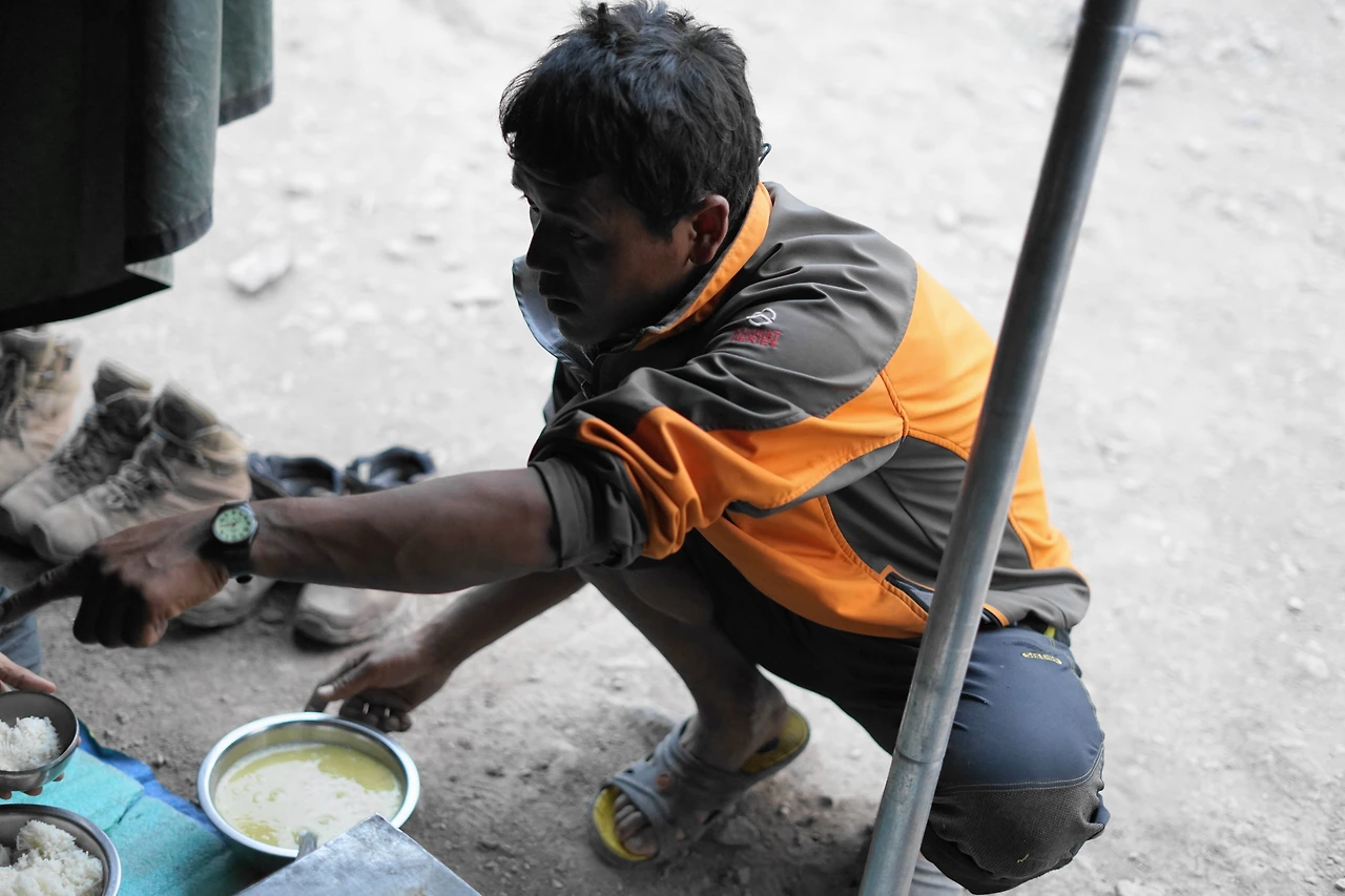 저 고개만 넘으면 된다. 조금 더 빨리 걸어서 땀을 내려고 일정한 페이스 안에서 쉬지않고 꾸준히 걸었다. (그런데도 춥기는 마찬가지였다.) 내가 입술이 퍼렇게 계속 추워하자, 구루지께서 앞에 걷던 셰르파에게 뭐라뭐라 묻더니 그가 입고 입던 패딩조끼를 벗어 내게 주었다. 손사래치며 아니라고 그냥 가도 된다고 했지만, 어느새 나는 셰르파의 온기가 채 가시지 않은 도톰한 패딩을 입고 있었을 뿐.