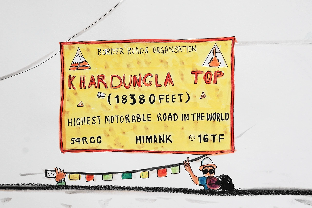 레 Leh 를 출발해 세상에서 가장 높은 도로 카르둥라 Khardungla(5,603m)를 넘어 누브라 밸리, 훈드르 Hunder에 가는 날이었다.