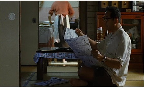 요코가 부모의 집을 방문했을 때 보여지는 장면 또한 마찬가지다. 오즈 야스지로의 다다미 숏처럼 인물의 시선을 정면으로 응시하지는 않지만 카메라는 조금 낮은 곳에서 조금 비켜서서 그 모든 것을 오래 그대로 지켜본다. 프레임 안에서 인물들은 오고 가면서 무심한 듯, 대화를 주고받는다. 그러나 서로를 바라보거나 또 바라보아야 한다는 강요를 받지는 않는다. 마치 우리들 대부분의 일상이 그렇듯 말이다.