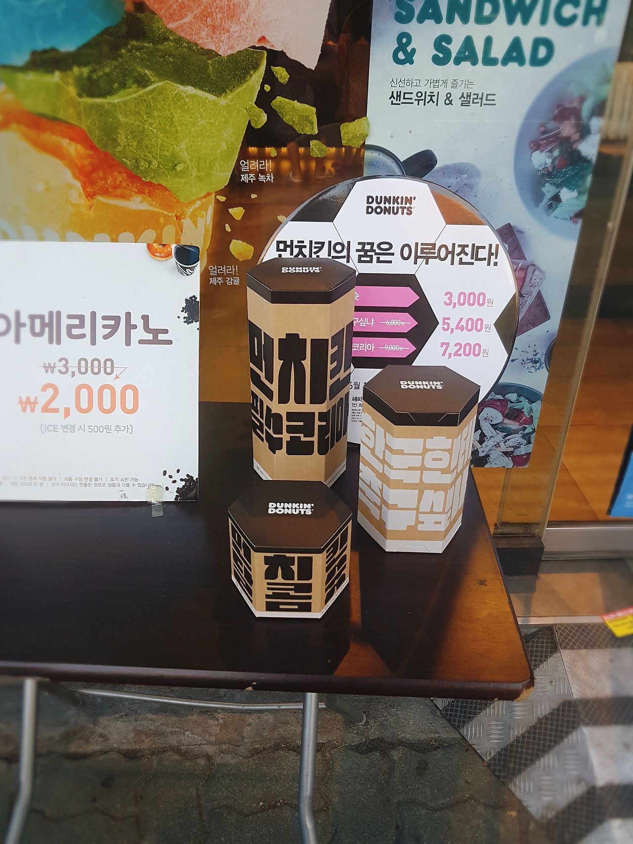 한국 월드컵경기가 있었던 날 치킨과 도넛이였다.