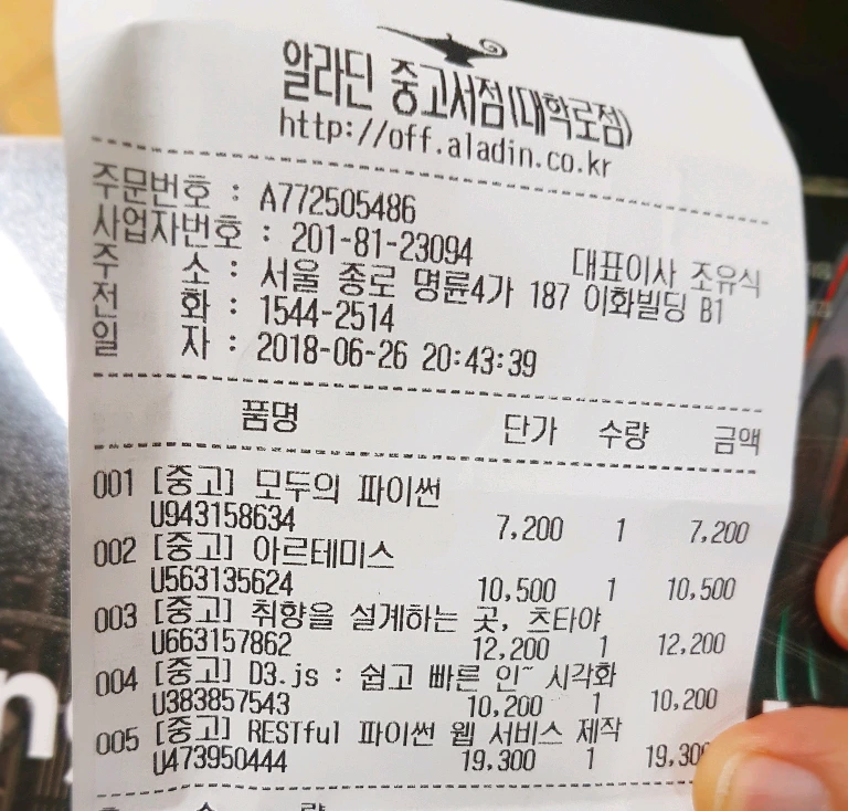 알라딘,증고,장마,비오는날,책구매,서점,5만원,택배