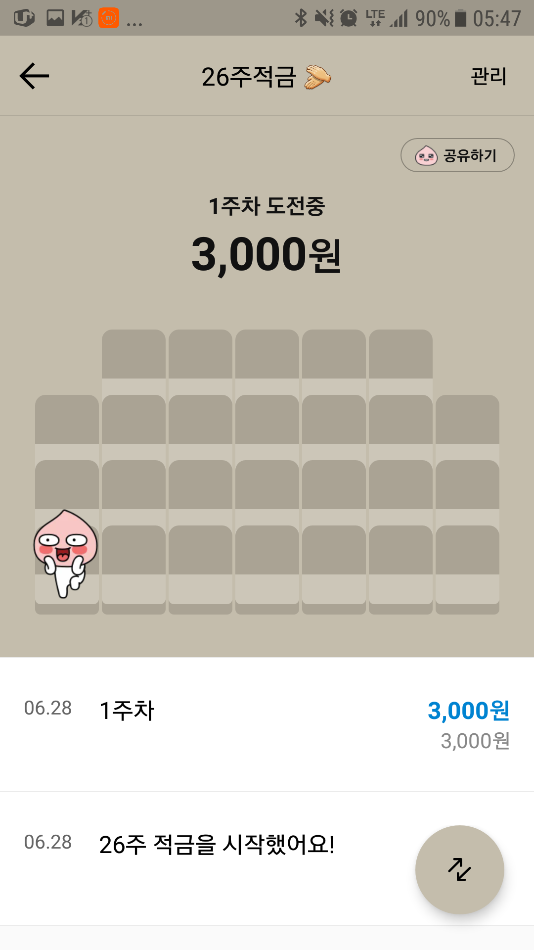 카카오뱅크,카뱅,26주적금,매주증액,보도섀퍼,돈,거위통장