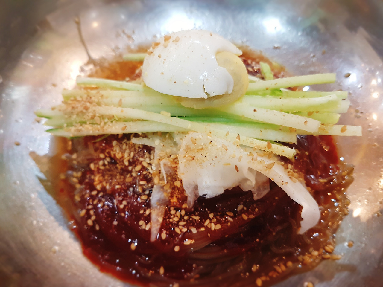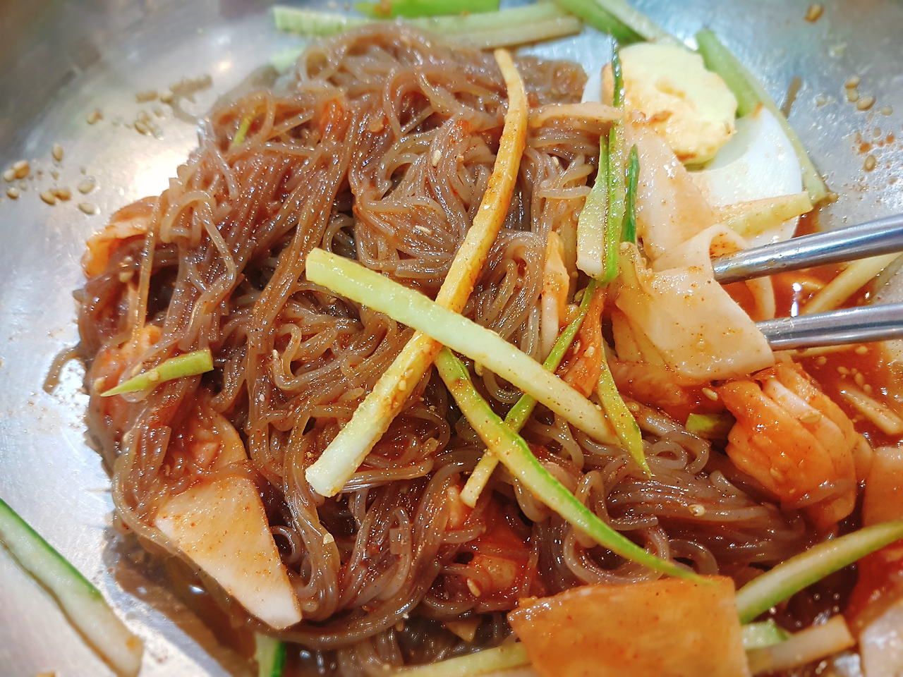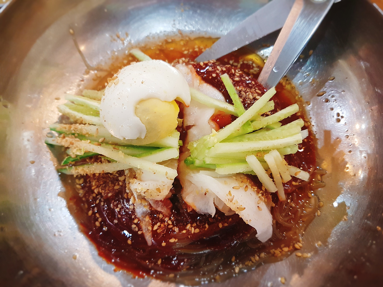 그러면 비냉을 먹다가 나중에 냉육수를 넣어서 물냉으로 만들어 먹는 것이 묘미다.