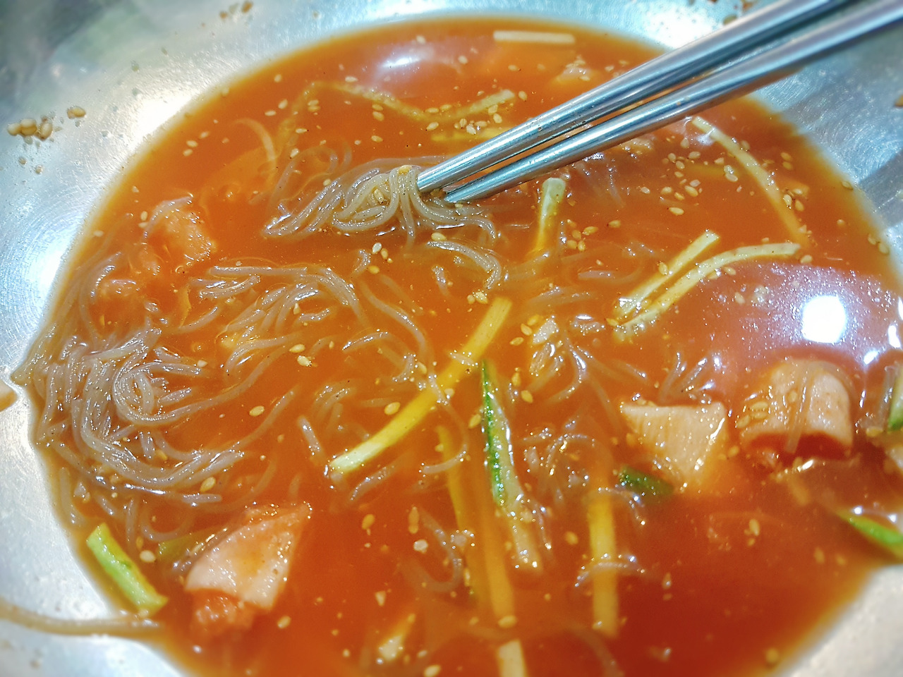 냉육수를 넣어서 물냉으로 만들어 먹는다.