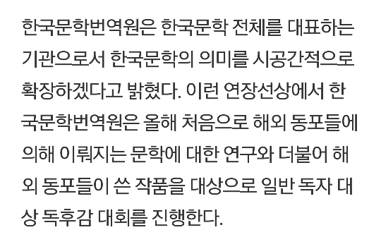 그리고 자연스럽게 신문기사에서 주최하는 한국문학번역원으로 찾아들어가는 것이 수순이였다.