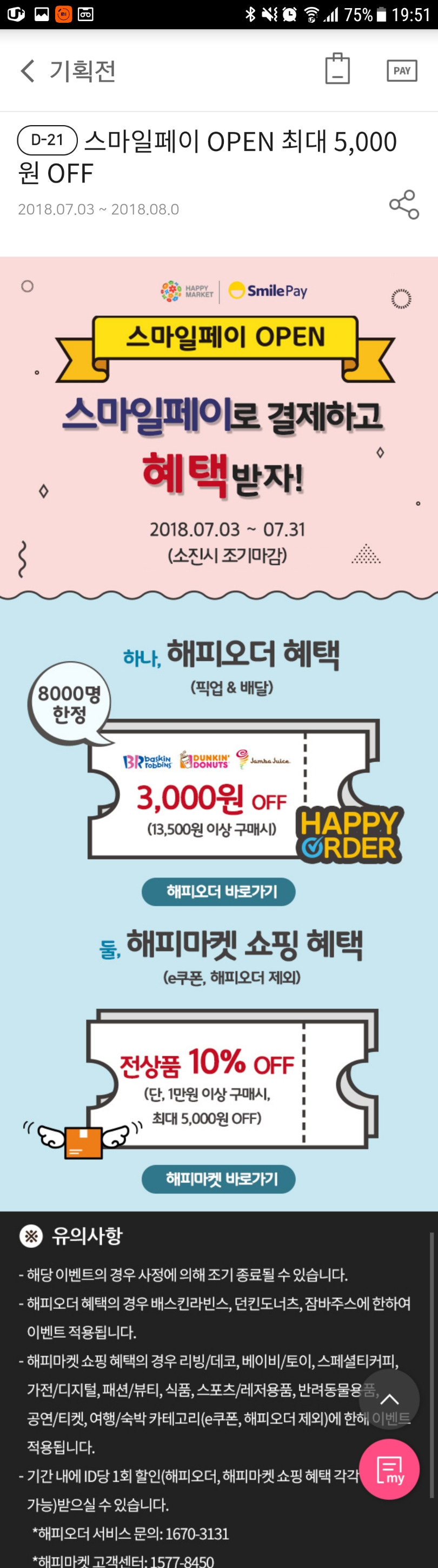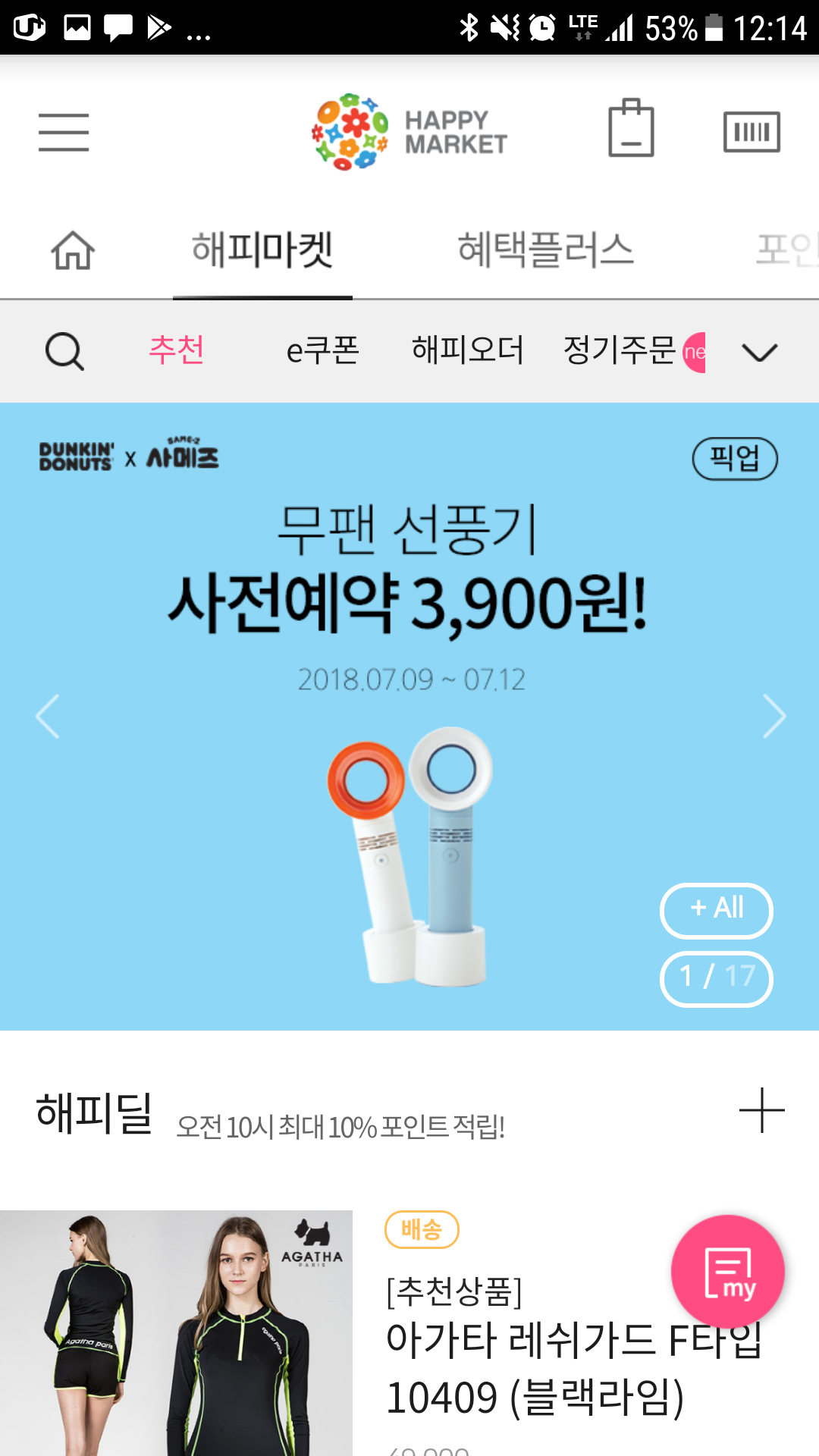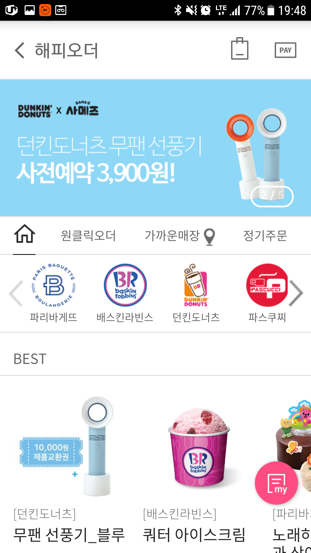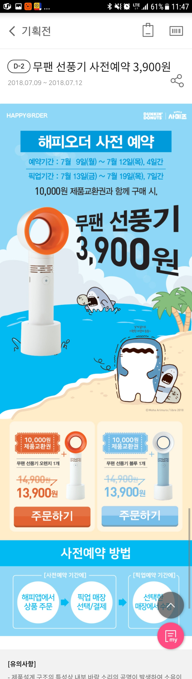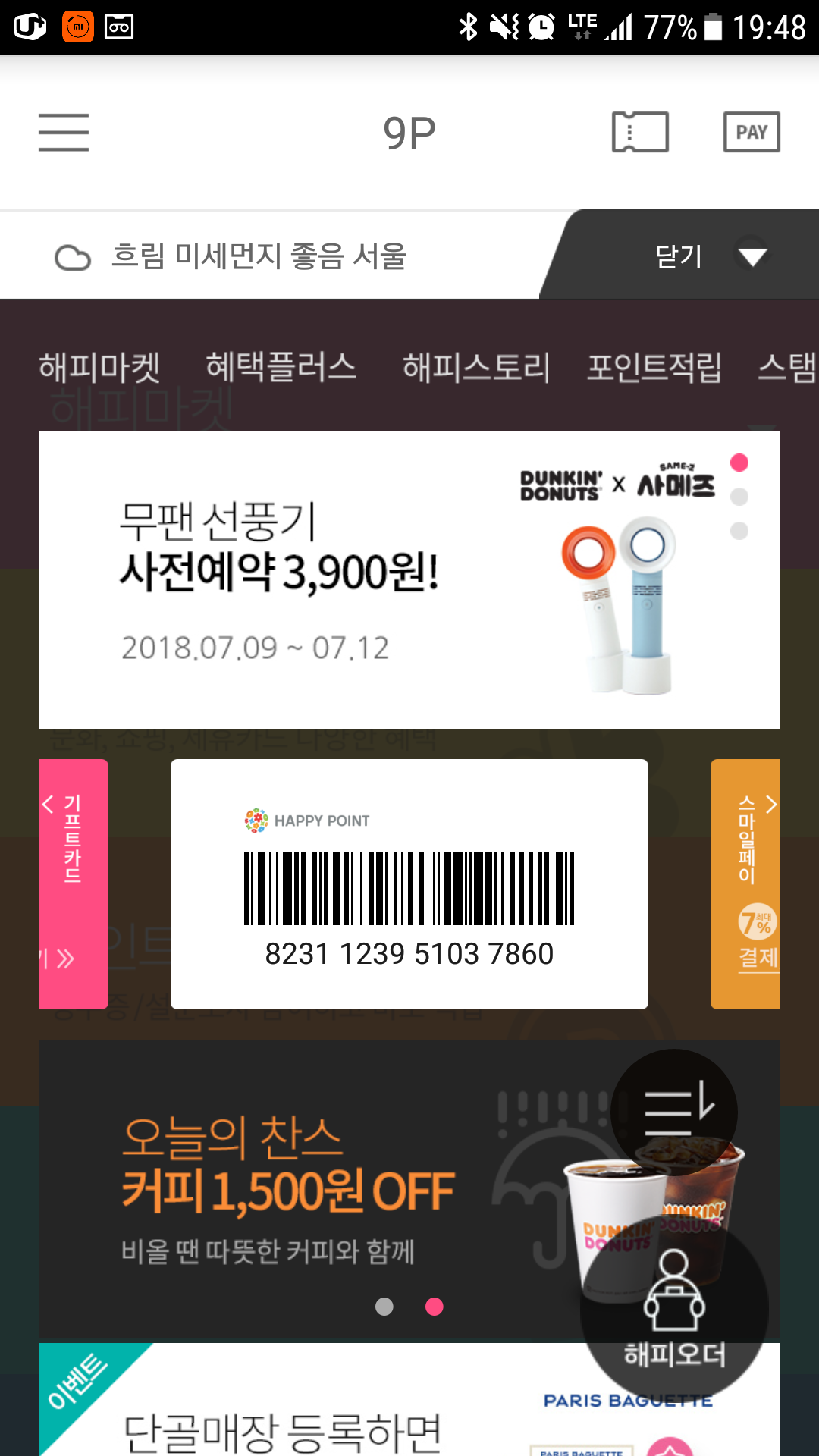 던킨도너츠,해피오더,무팬선풍기,해피포인트앱,스마일페이