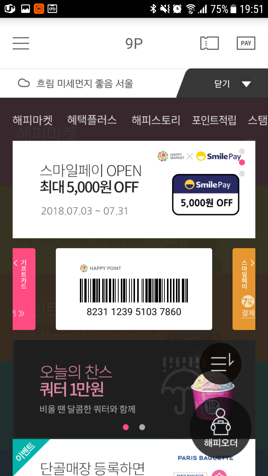 기존 해피포인도 사용하고, 스마일페이 이벤트까지 적용해 본다.