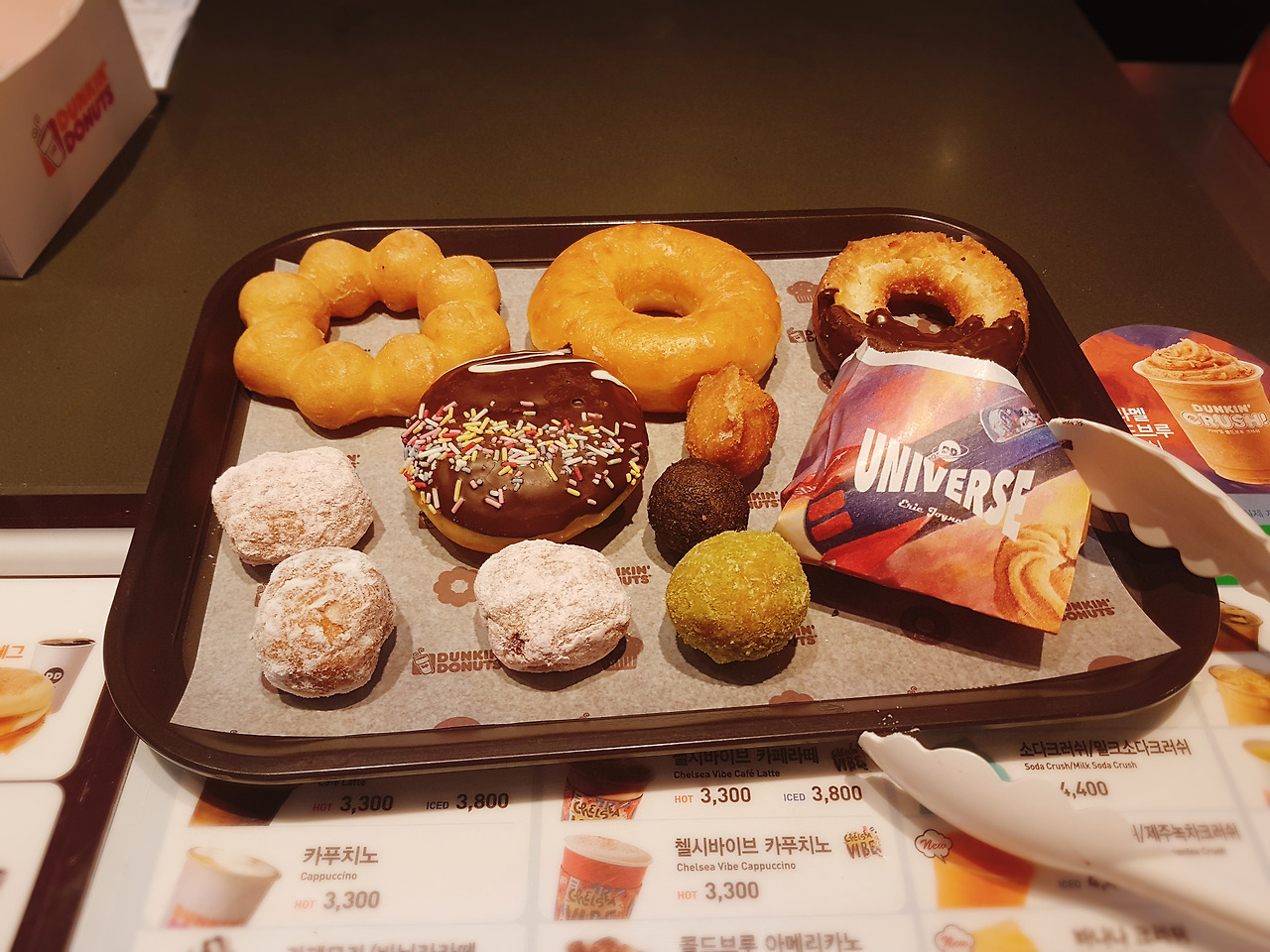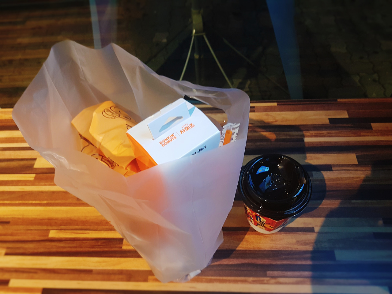 만원권 상품권으로 도넛 준비, 집사람님이 카페라때를 주문하셔서 상품권 가격 오바~