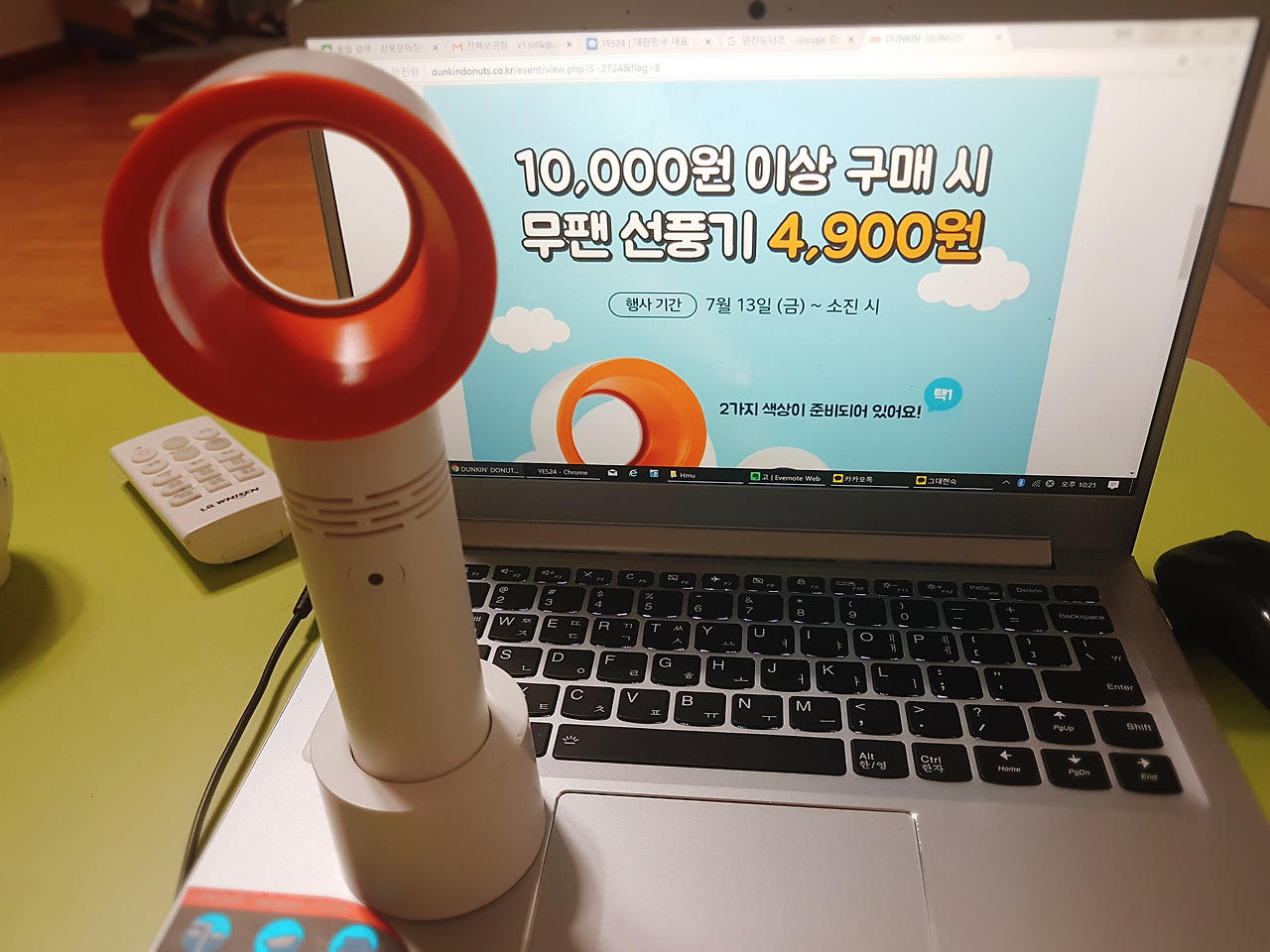 던킨도너츠,무팬선풍기,개봉기,해피오더,시원한장난감