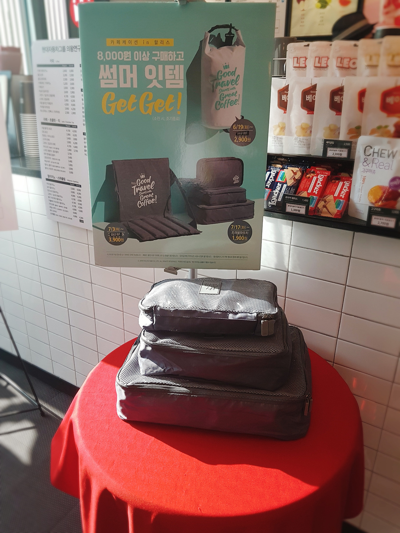 매장 앞애 가지런히 놓여져 있던 트래블파우치, 여전히 8,000원 구매 할때 이번에는 1,900원에 구매가 가능하다. 역시 오늘도 회사 후배와 함께 한다.
