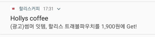 스마트폰으로 할리스 앱의 이벤트 알람이 온다.