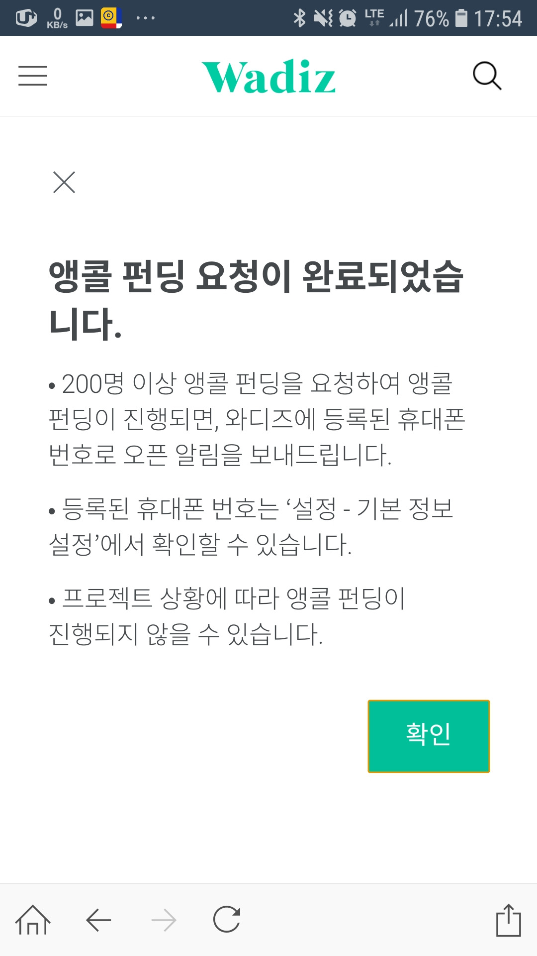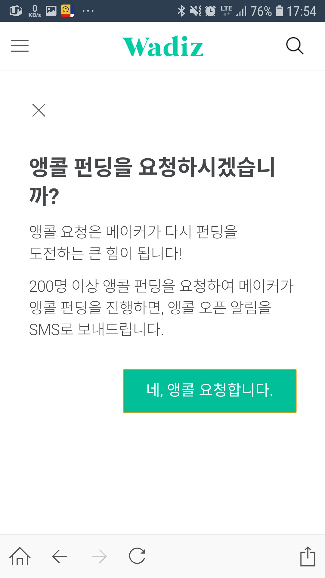 와디즈 베타 서비스 앵콜서비스 요청