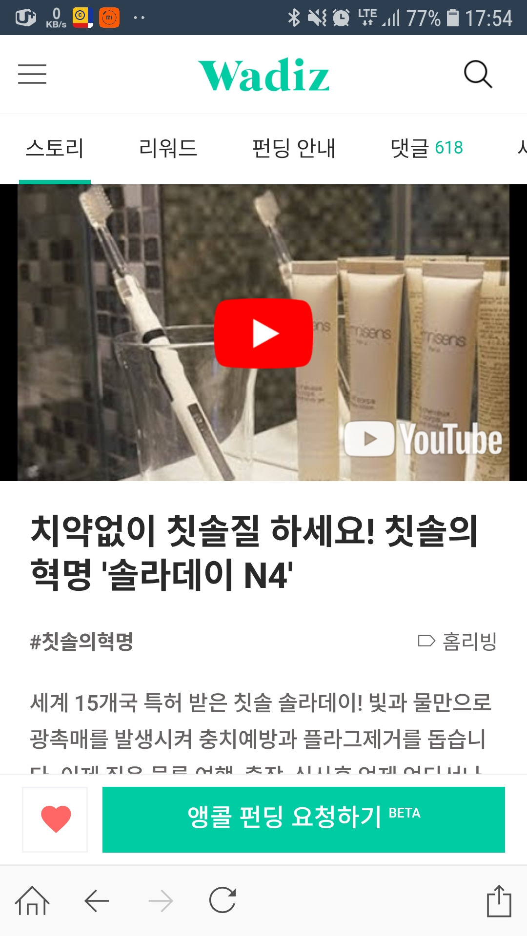 와디즈,치약없이,칫솔질,칫솔의혁명,치석,치석제거, 솔라데이,N4,플라그