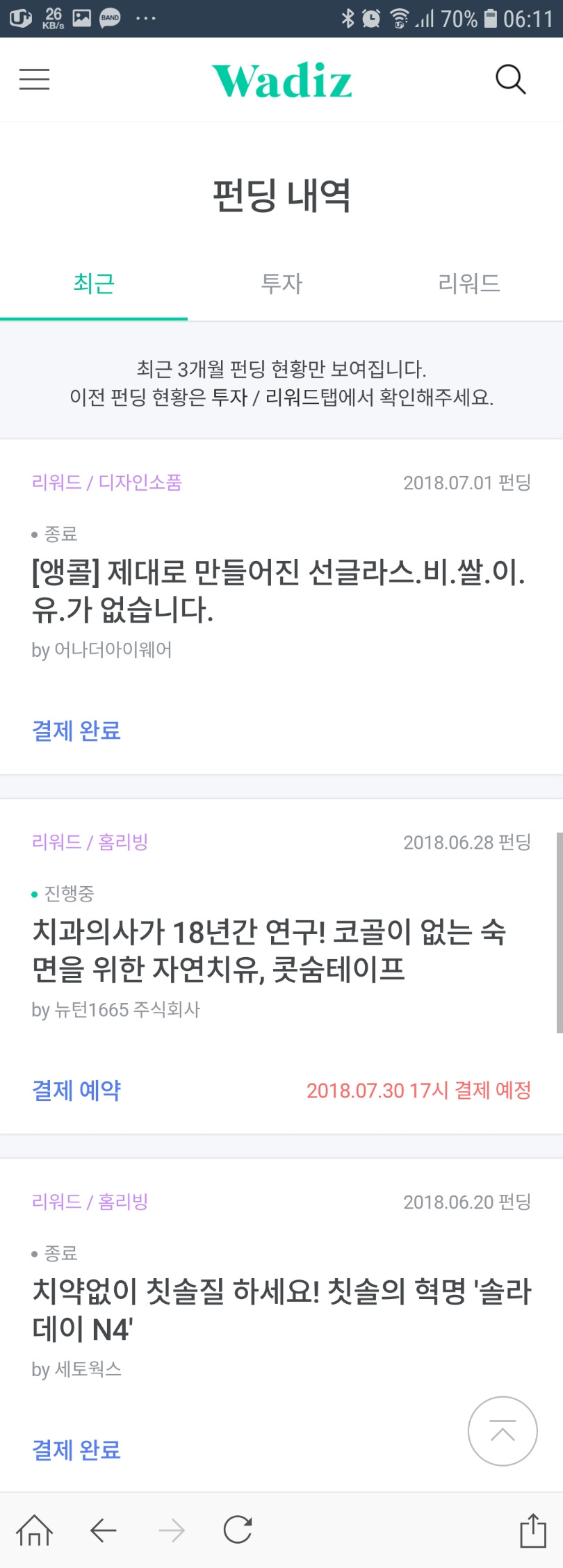 요새 와디즈에 빠져 엄청 펀딩를 했건만, 앵콜은 첫번째다. 물론 앵콜서비스가 시작 된 것이 얼마 안될 수도 있지만, 강추다.