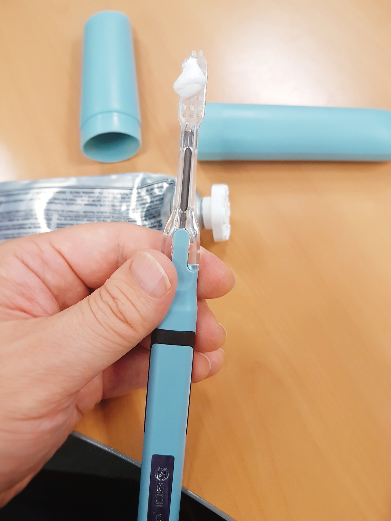 처음에는 치약없이 간소하게 칫솔을 휴대한다는 측면만 생각했다. 칫솔 보관의 맹점은 칫솔보다는 치약의 크기였고, 치약을 다 사용했을때를 파악하지 못하거나 맹숭하게 치약을 놔두고 왔을때다. 나 또한 파우치, 여행용 플라스틱 케이스 등을 다 고려해 보았지만, 석연치 않았다.