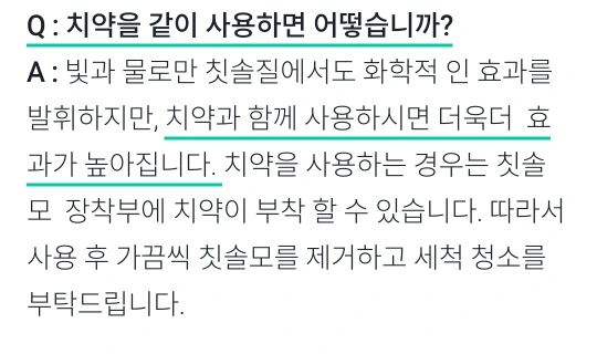 치약없이 만이 아니라 치석을 방지한다. 치석인 플라그(Plaque)를 제거한다.