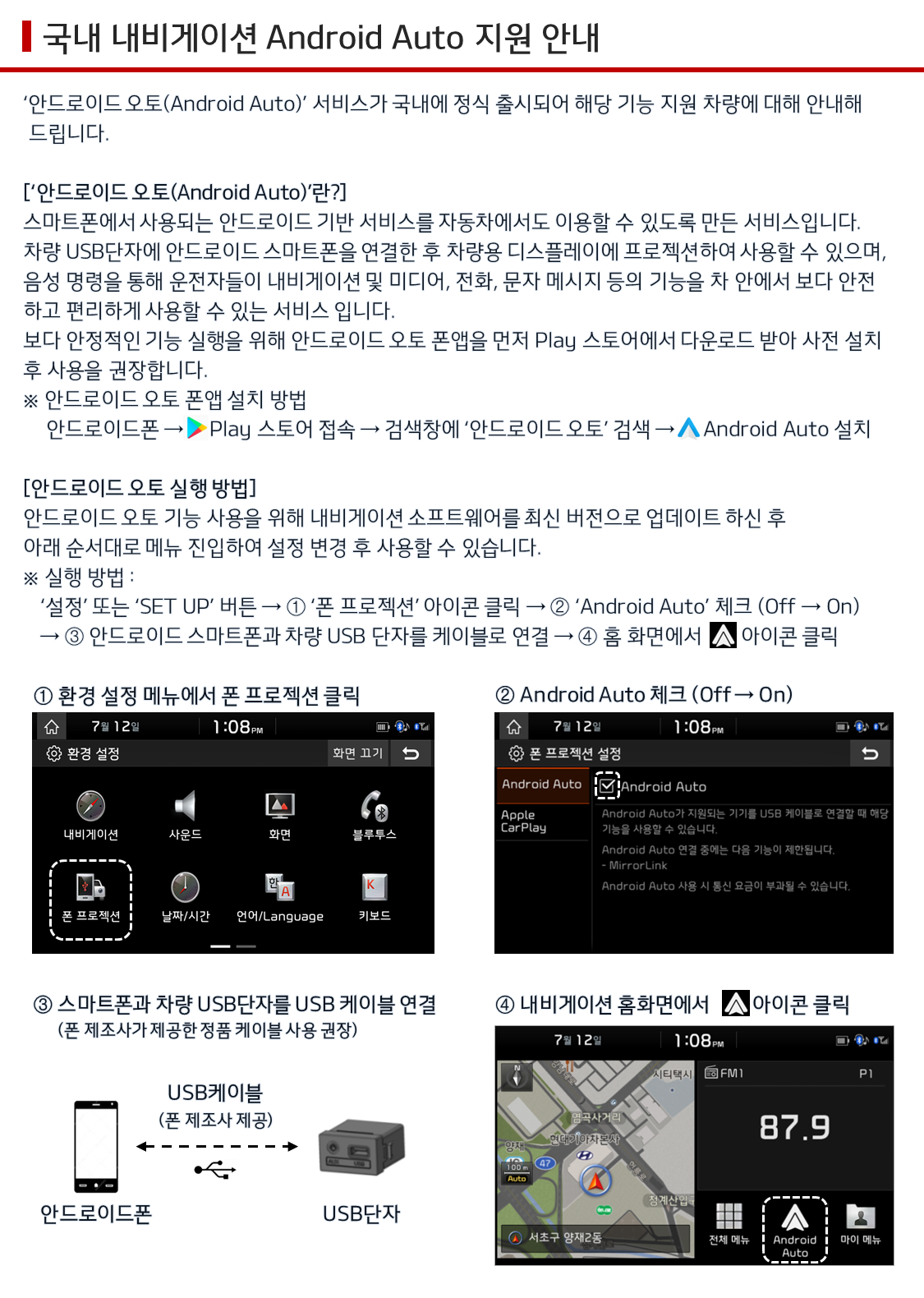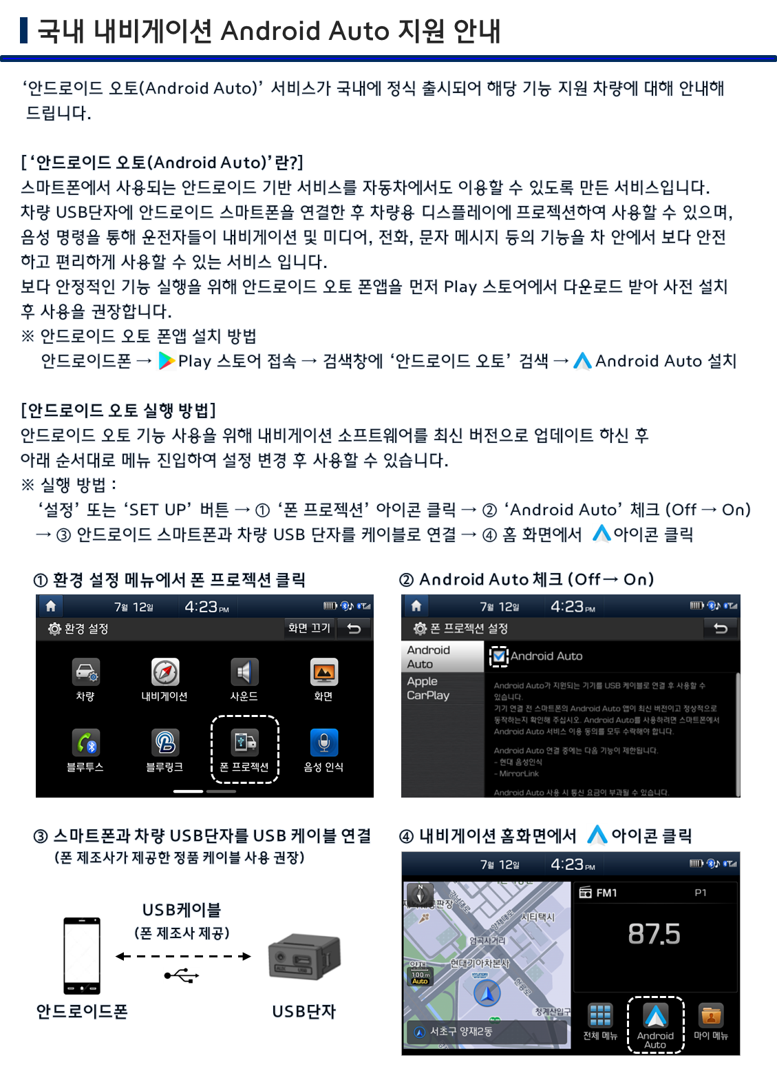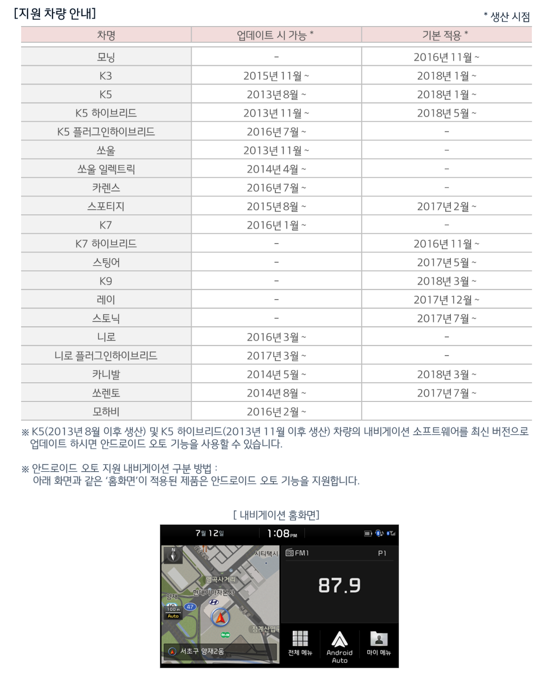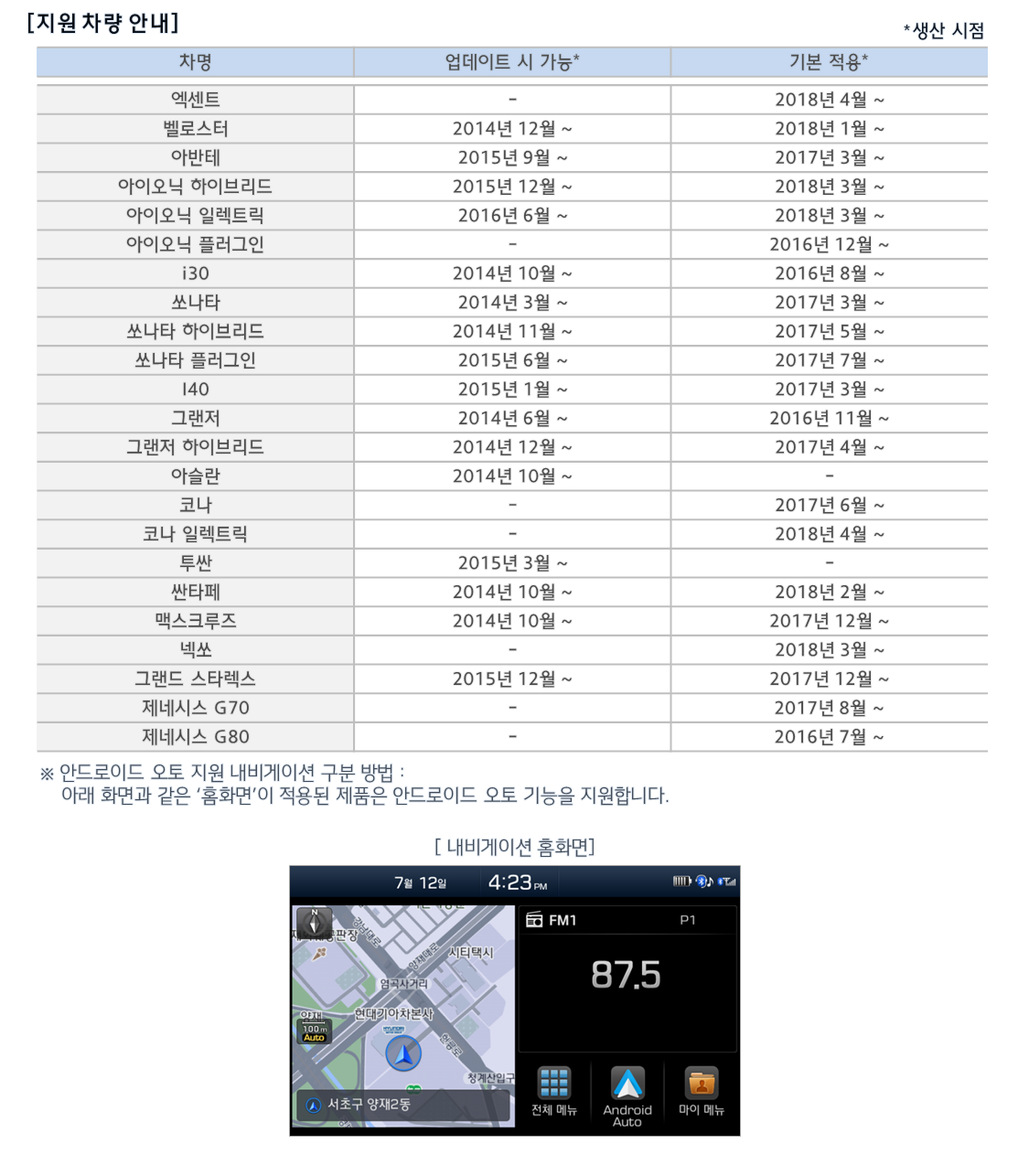 현대기아 내비게이션 업데이트 공지 사이트나 이곳에서 안드로이드 오토 내용을 접한다.