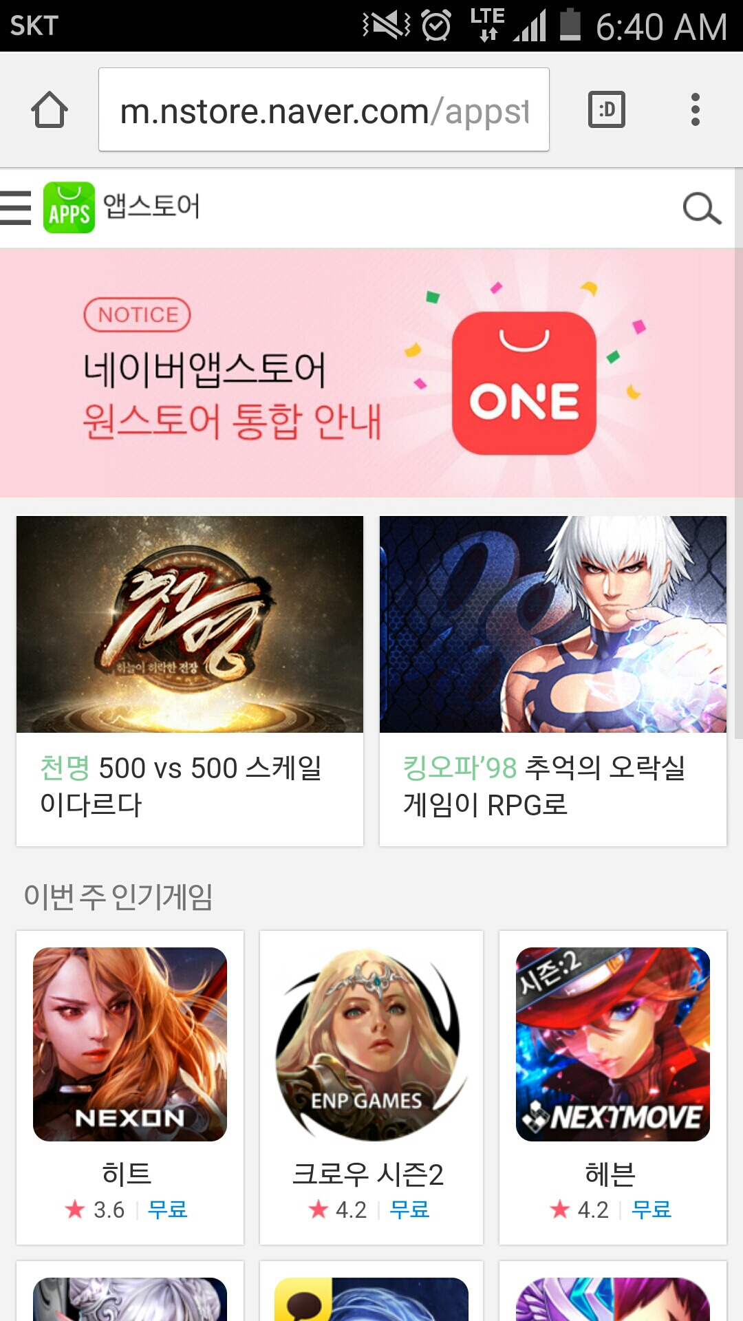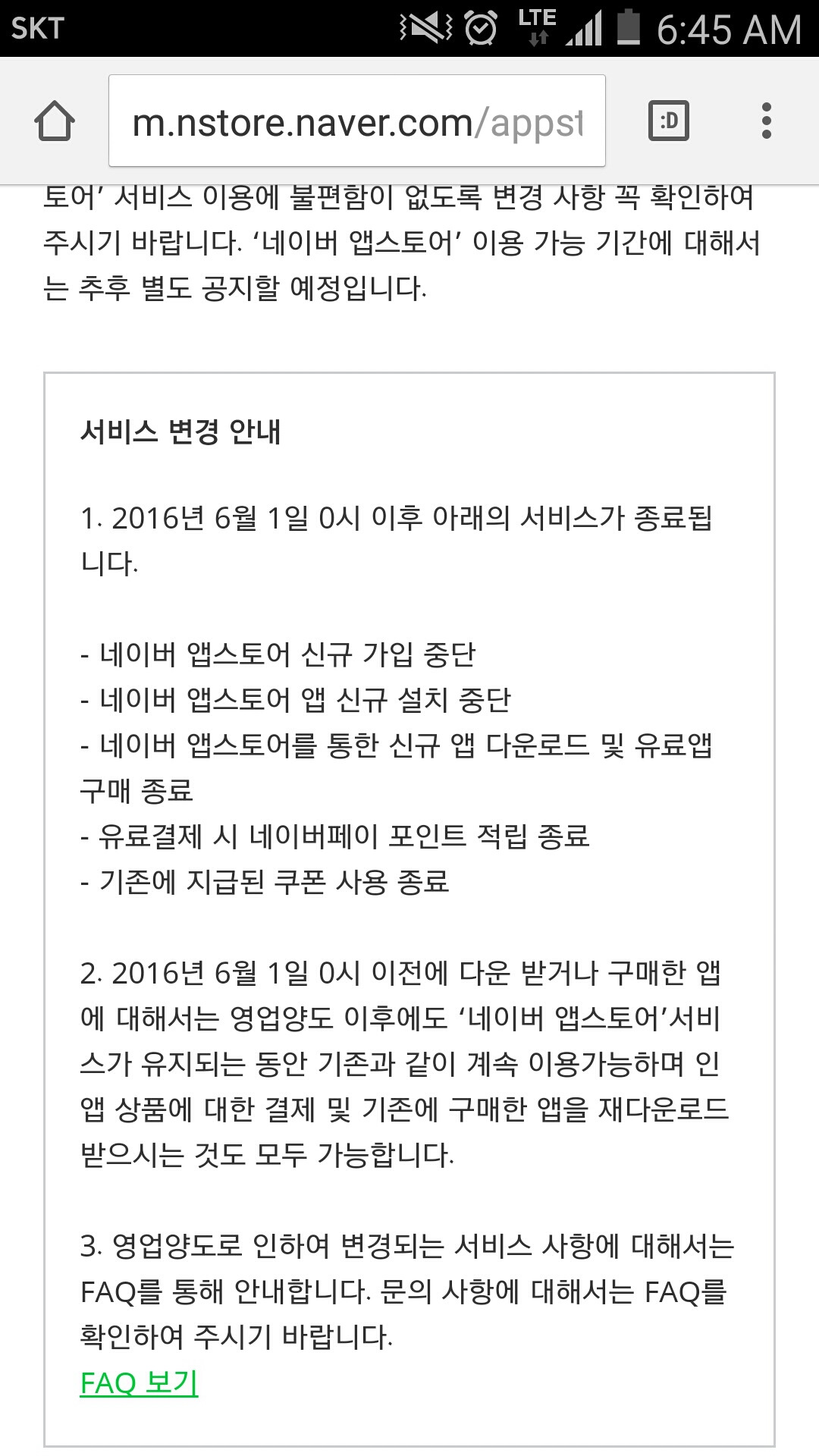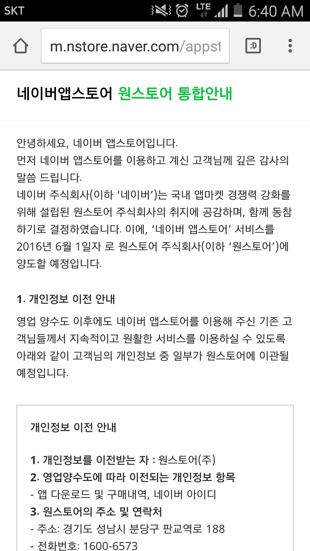 그리고 네이버 앱스토어 사이트를 찾는다. 통합 안내의 공지가 있다. 분명 자발적으로 설치한 유저들을 위함 일 것이다. 기본 장착되어 있는 이통사하고는 태생부터 다르기 때문이다.