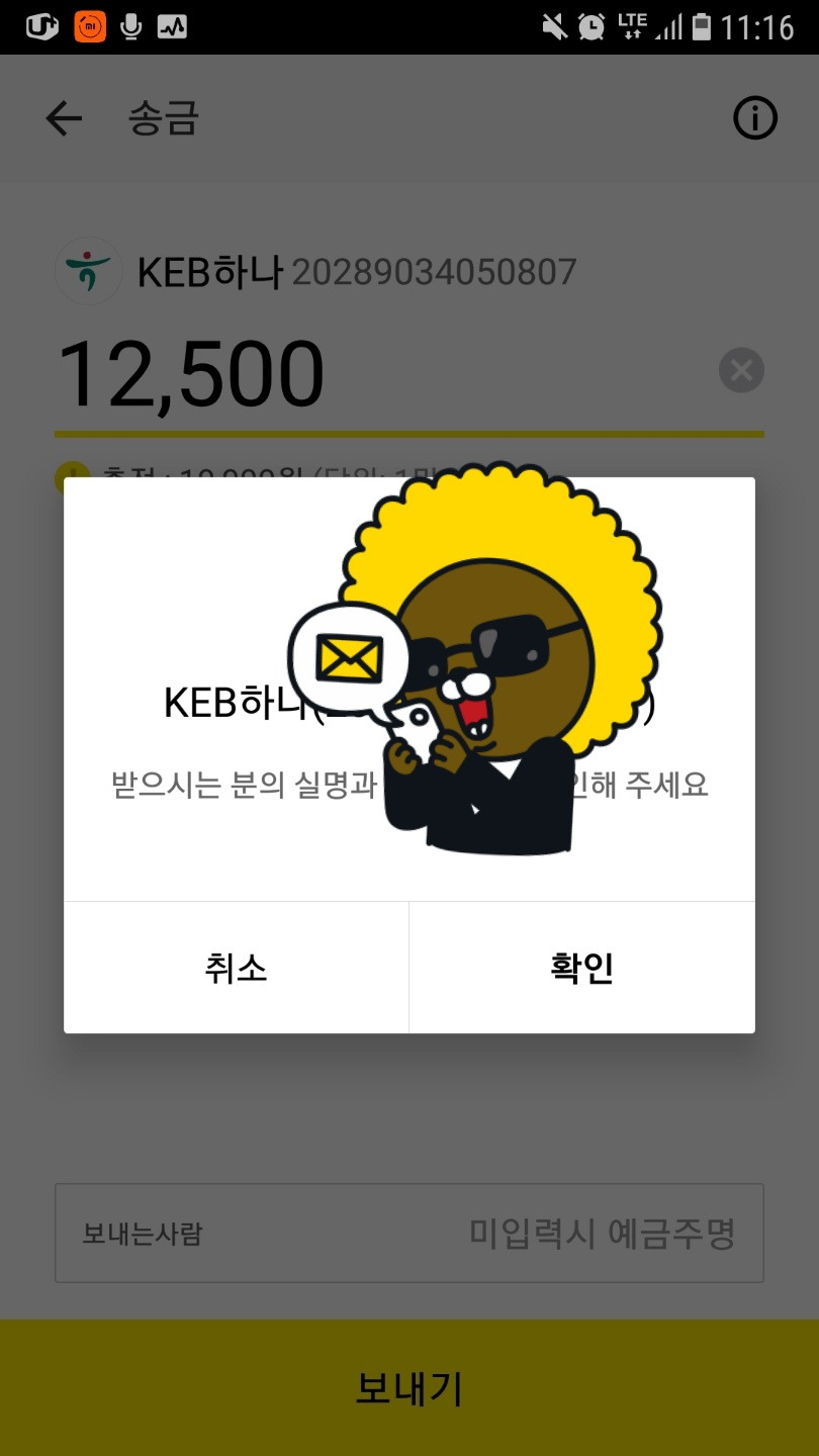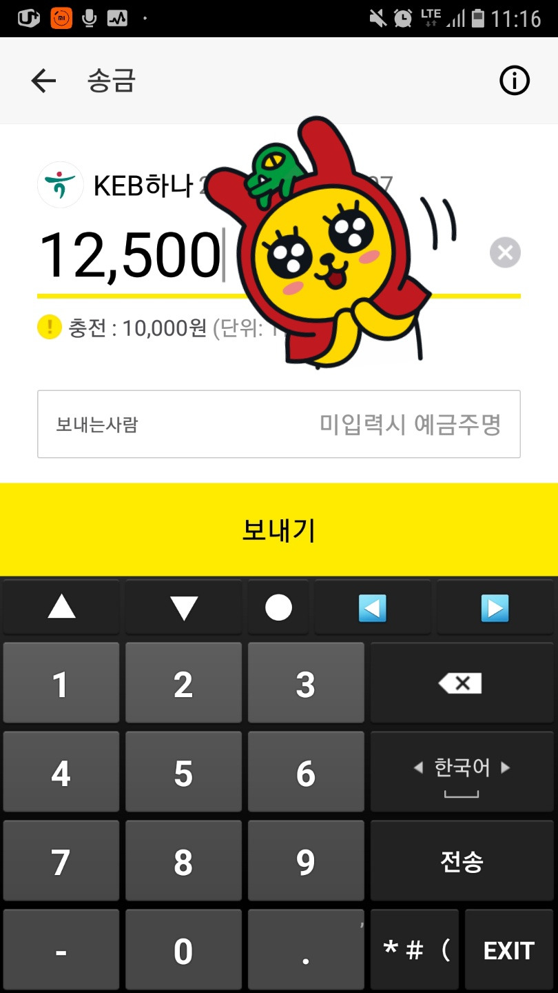 최근 가장 잘 쓰는 기능 히나가 바로 카톡 송금이다.