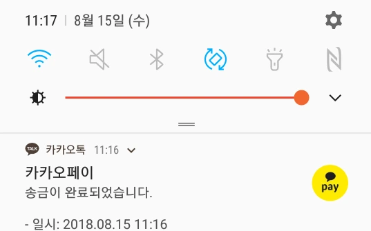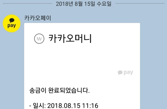 4.카카오 머니 이체 여부가 카톡이 온다.
