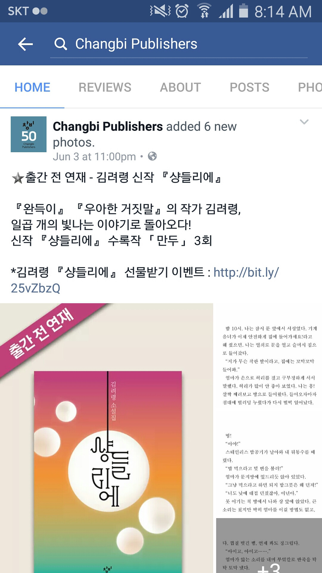 창비 페이스북에 가면, 역시 "샹들리에" 수록작인 만두도 미리 접할 수 있다.
