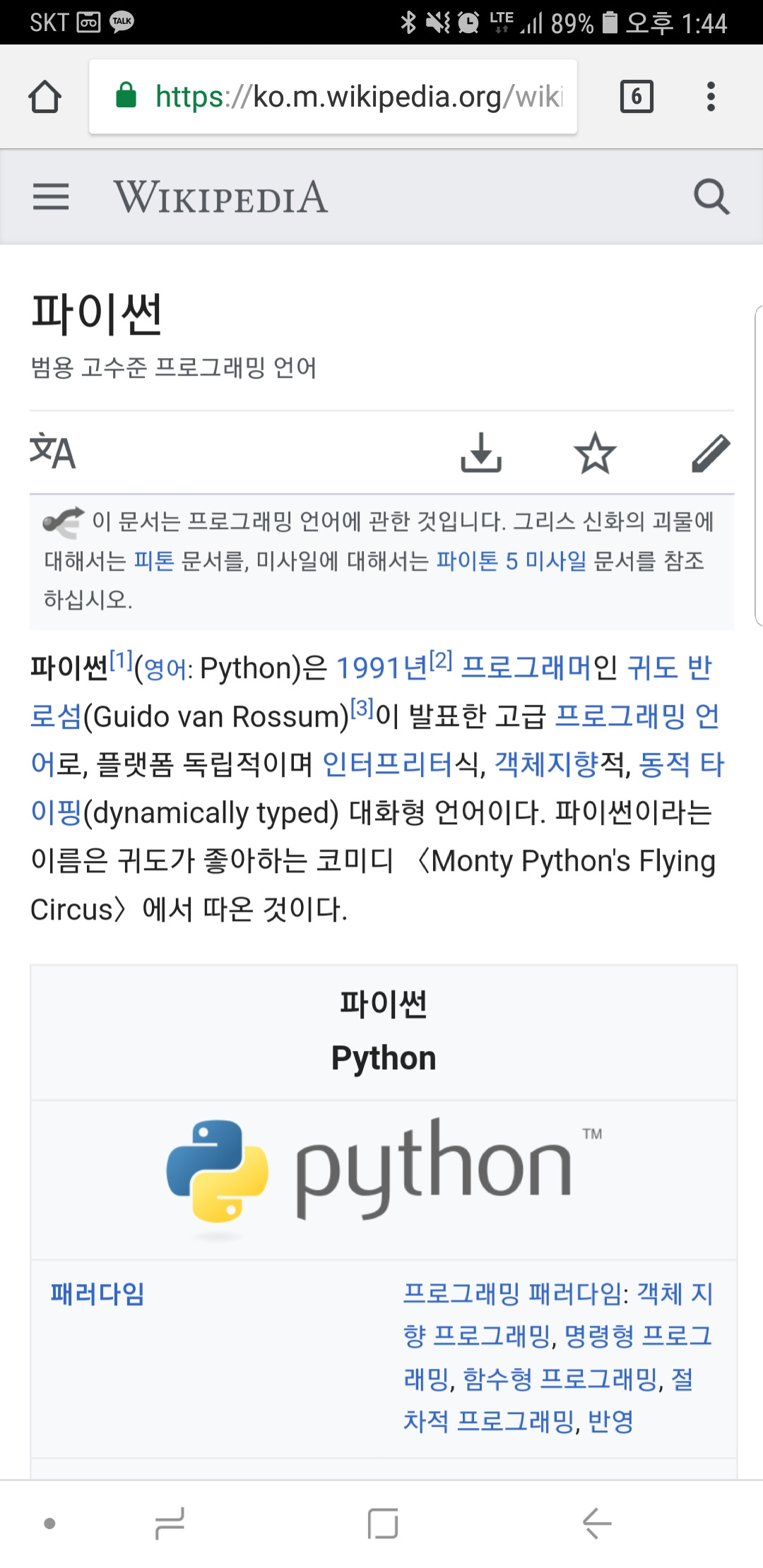 파이썬, 위키피디아