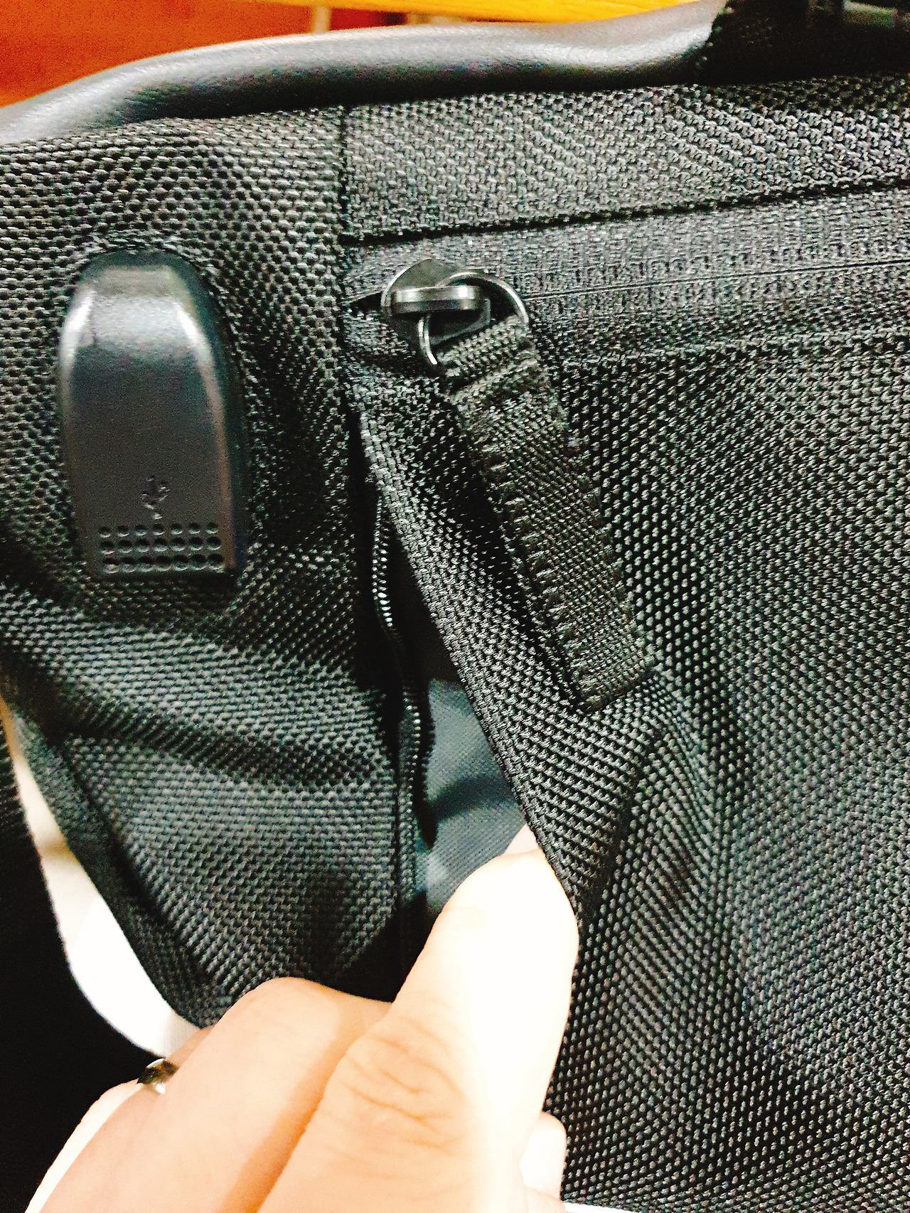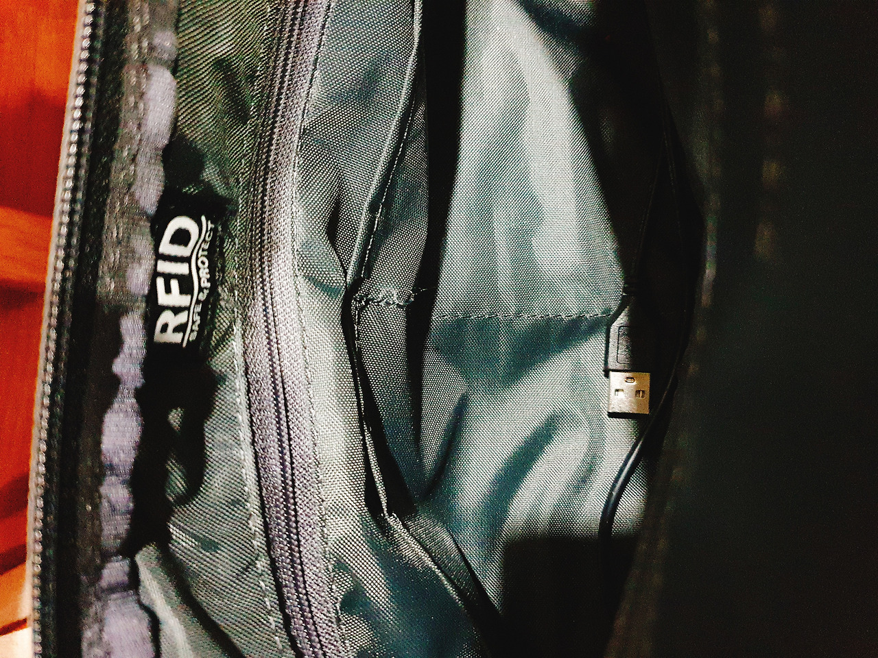 뒷면 충전기와 수납지퍼